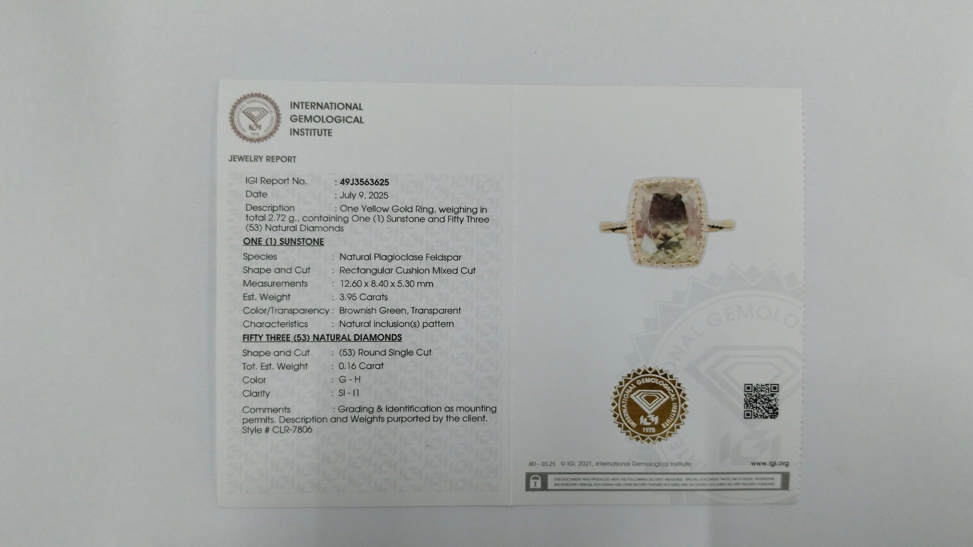 - Lab Name: International Gemological Institute (IGI)