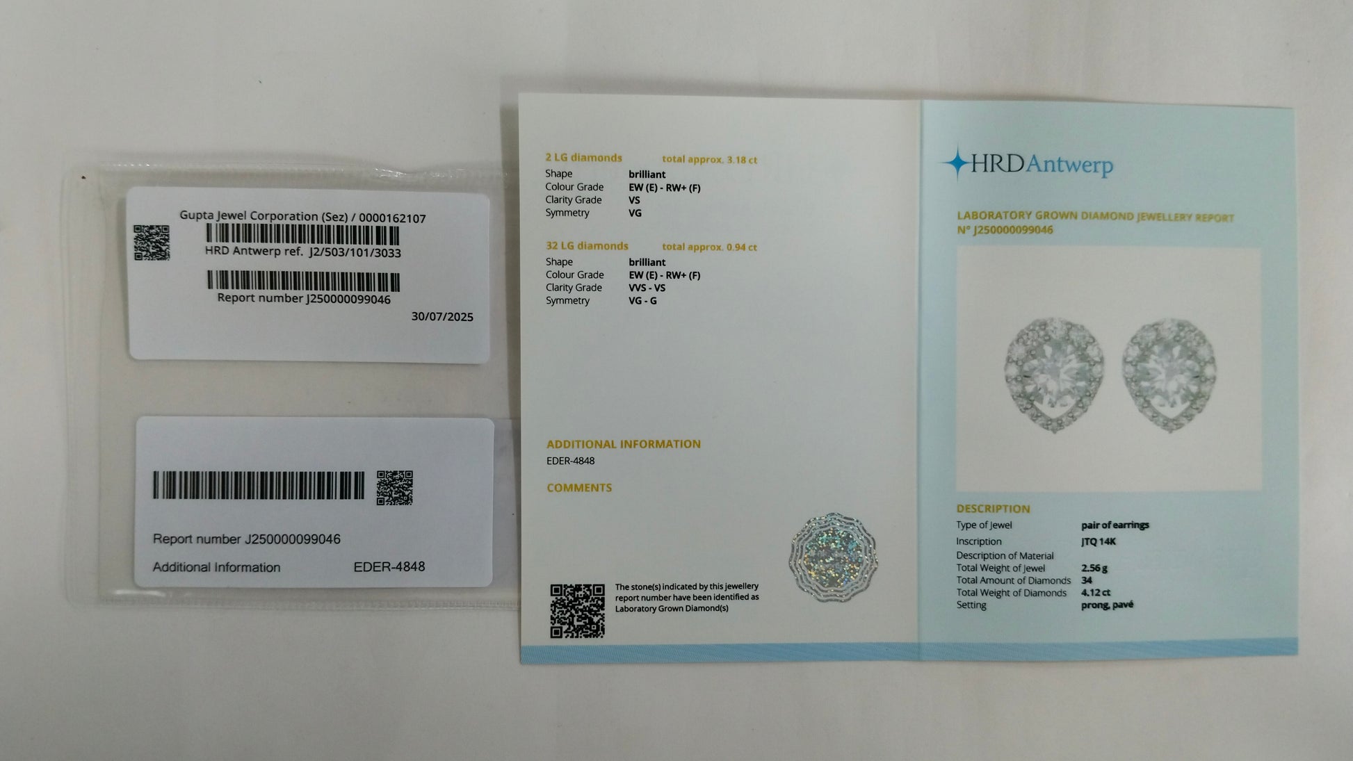 4.12 Carats Lab Grown Diamond 14K Gold Earrings