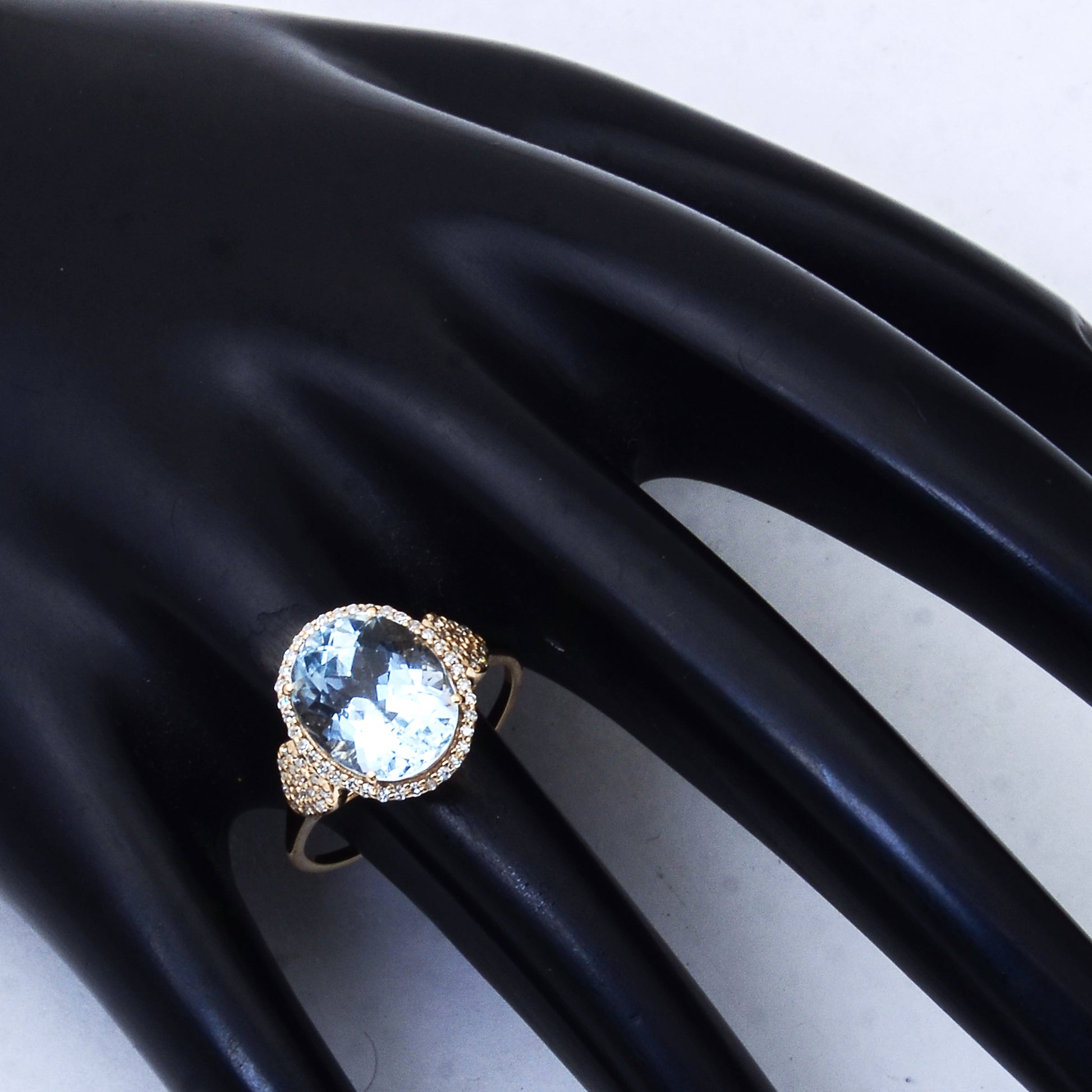 4.12 Ct Oval Mixed Cut Natural Aquamarine 14K Gold Ring
