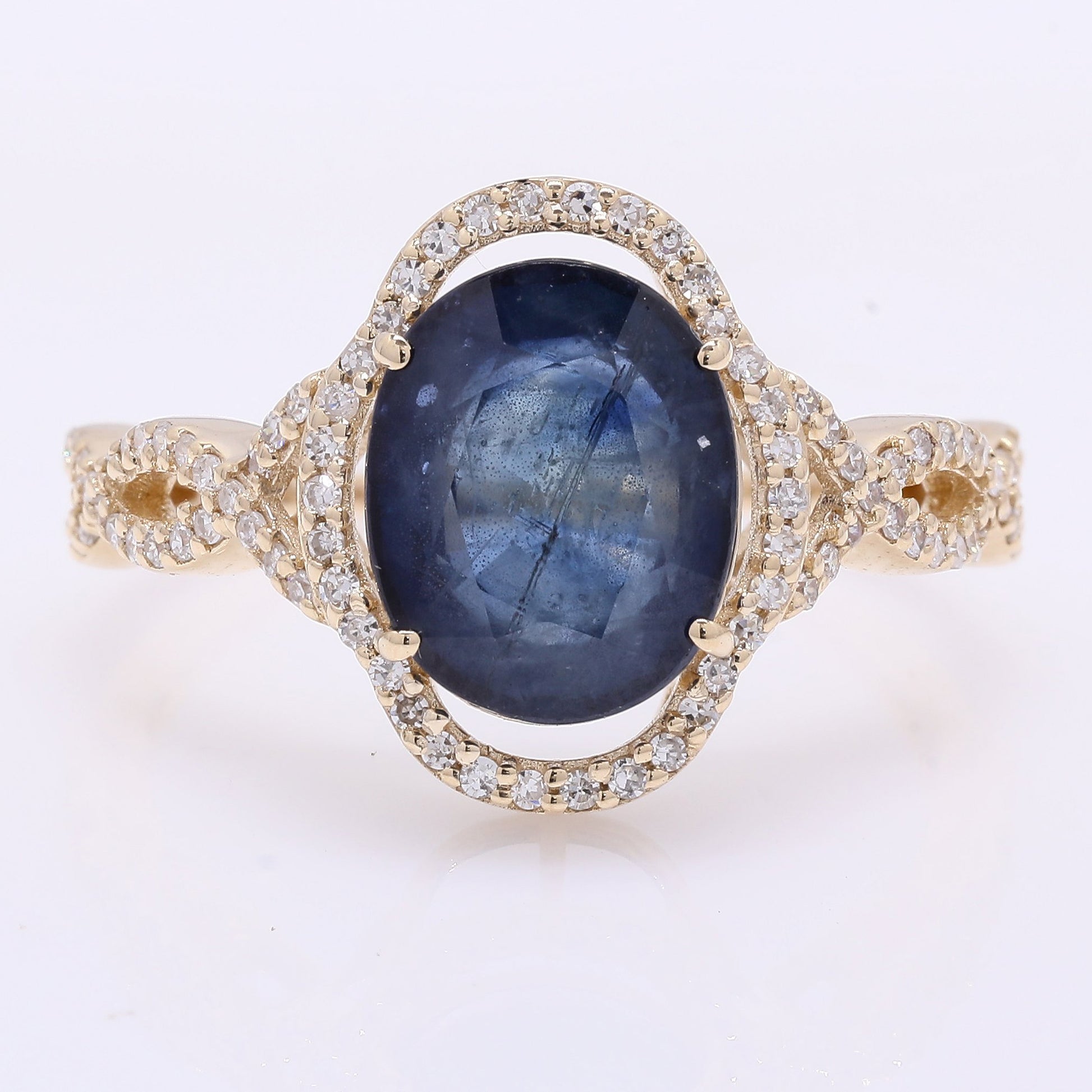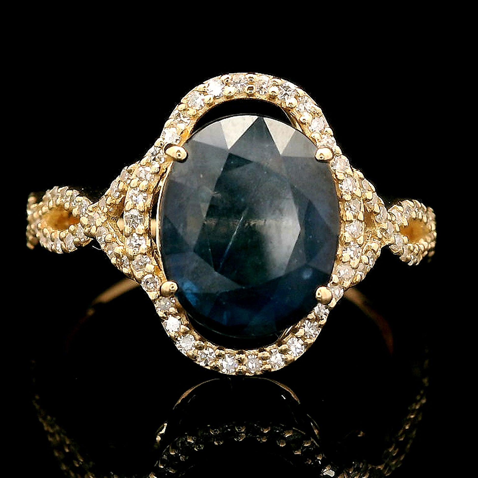 4.14 Ct Oval Mixed Cut Natural Sapphire 14K Gold Ring