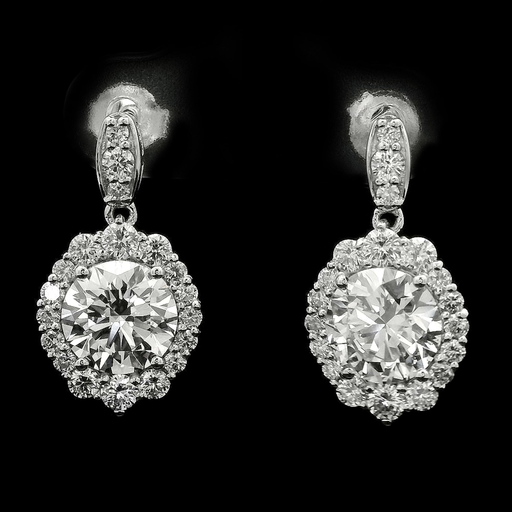 4.15-Carat Lab-Grown Diamond Round Cut Brilliant Earrings