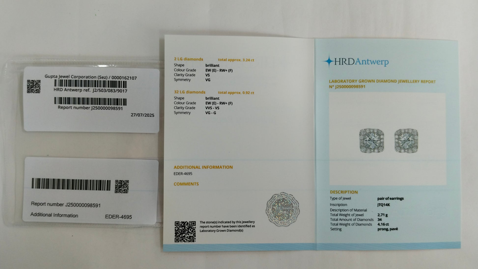 4.16-Carat Lab-Grown Diamond Round Brilliant Earrings - HRD Certified