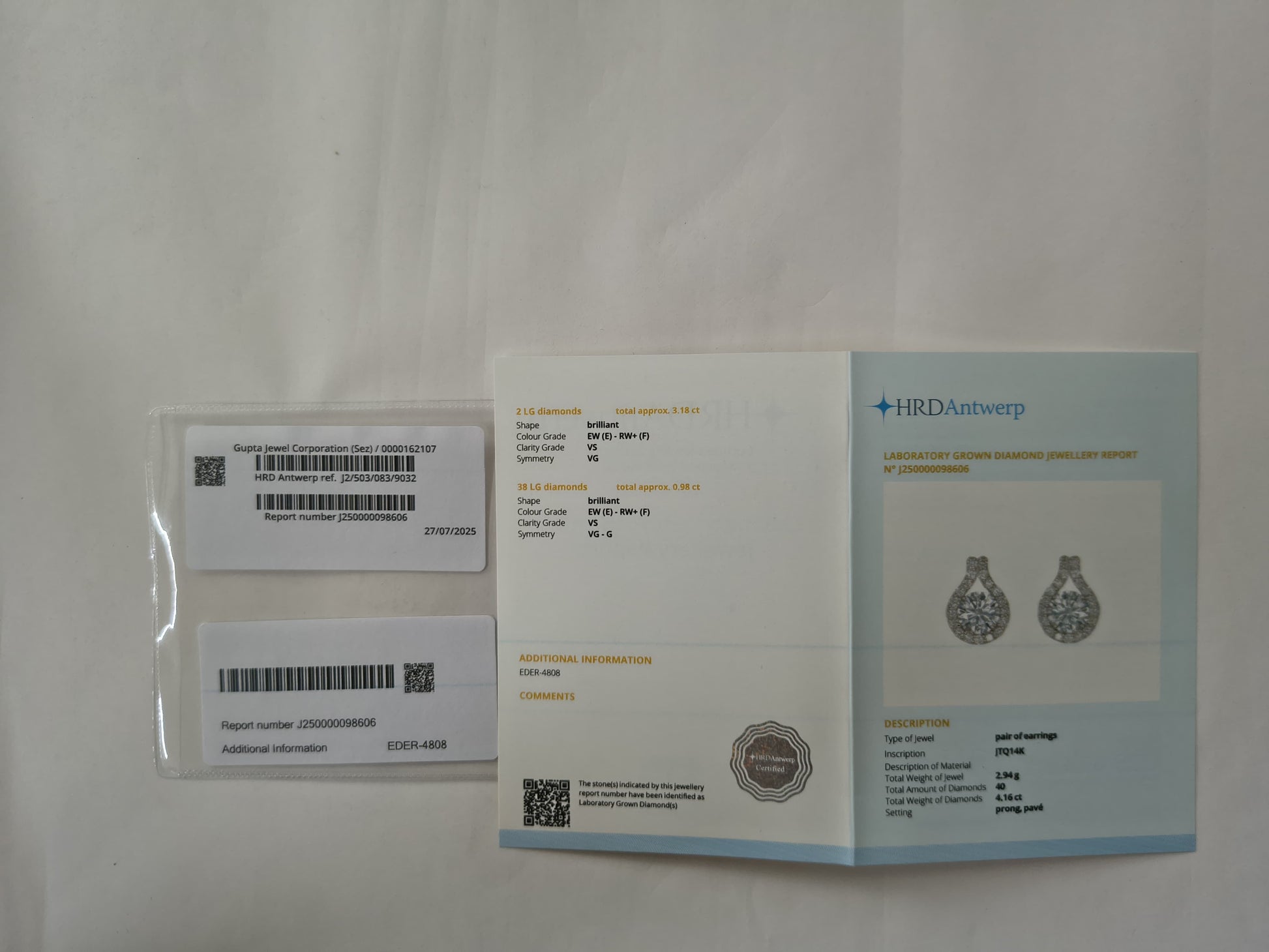 4.16-Carat Lab-Grown Diamond Round Cut Brilliant Earrings ? HRD Certified