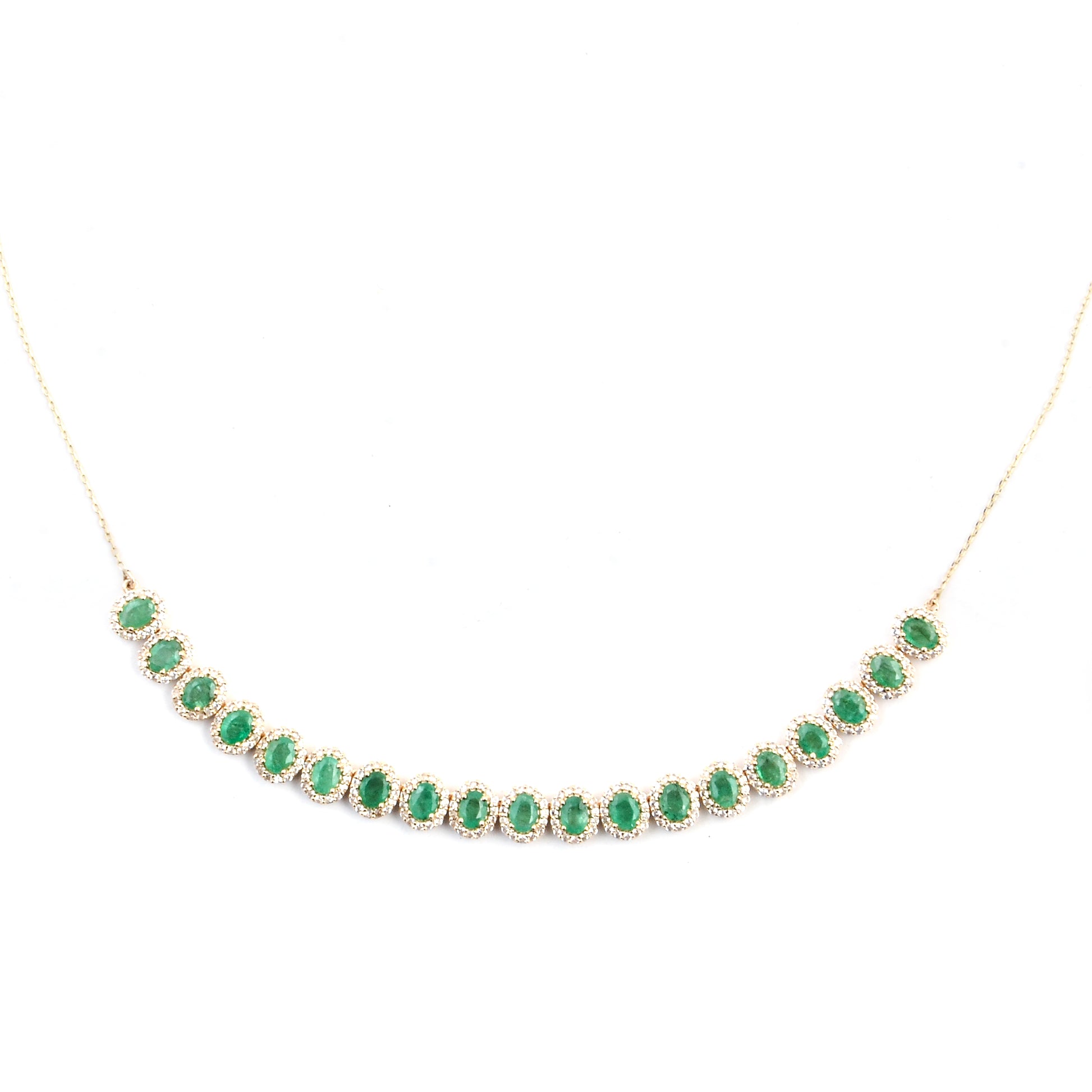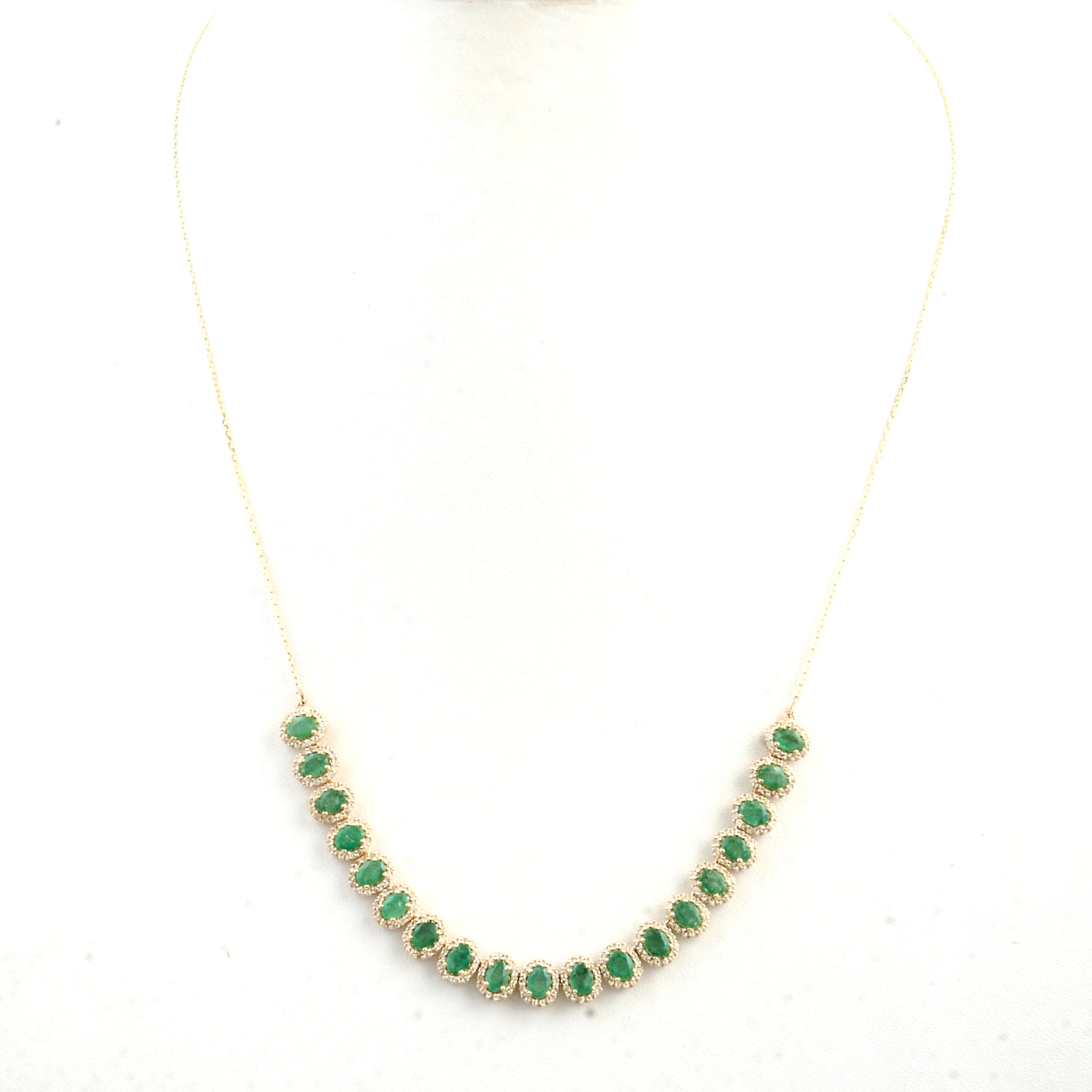 4.16 Ct Oval Emerald 14K Gold Necklace