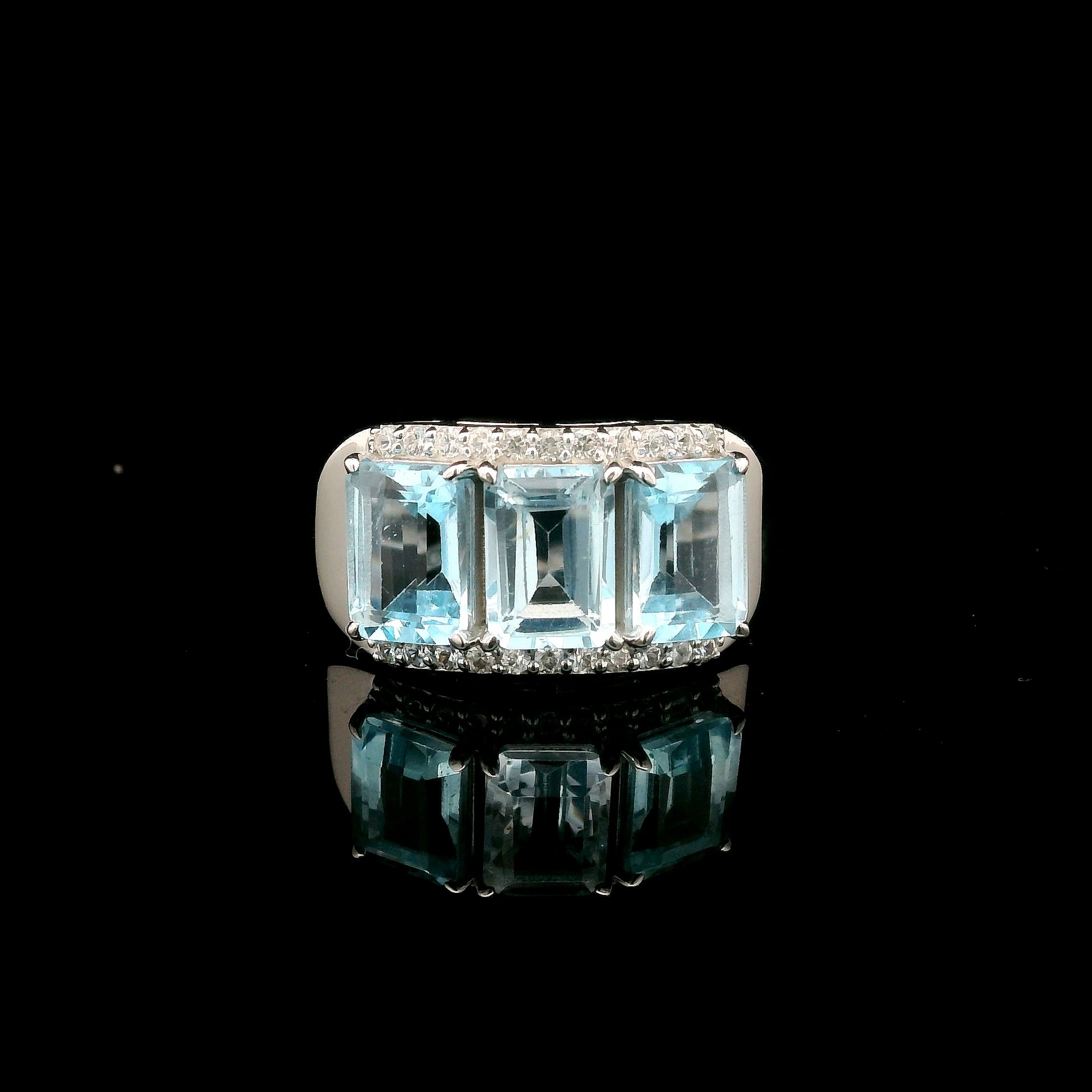 4.17 Ct Octagon Blue Topaz, White Zircon 925 Sterling Silver Ring
