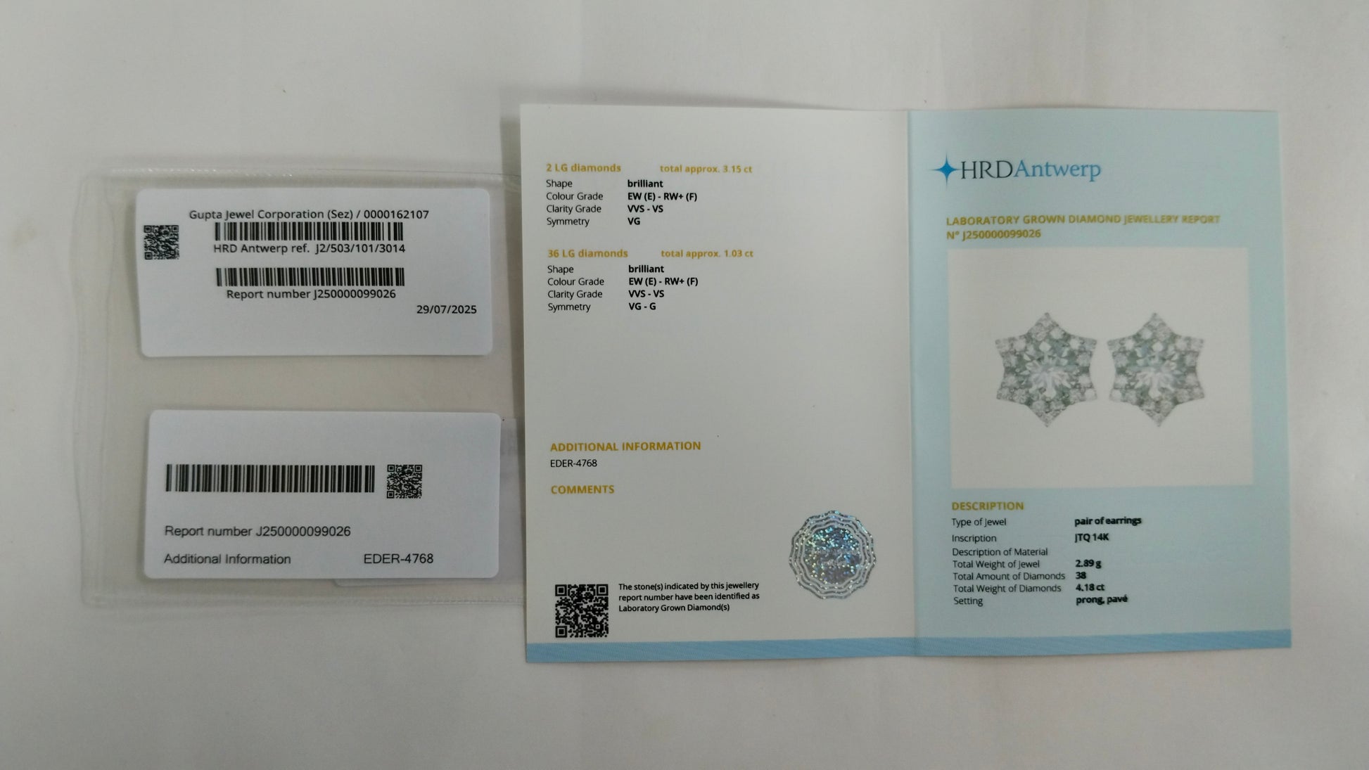 4.18 Carats Lab Grown Diamond 14K Gold Earrings