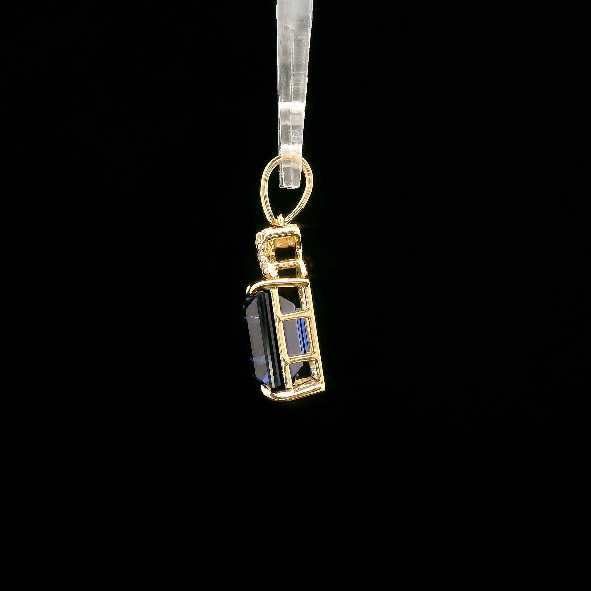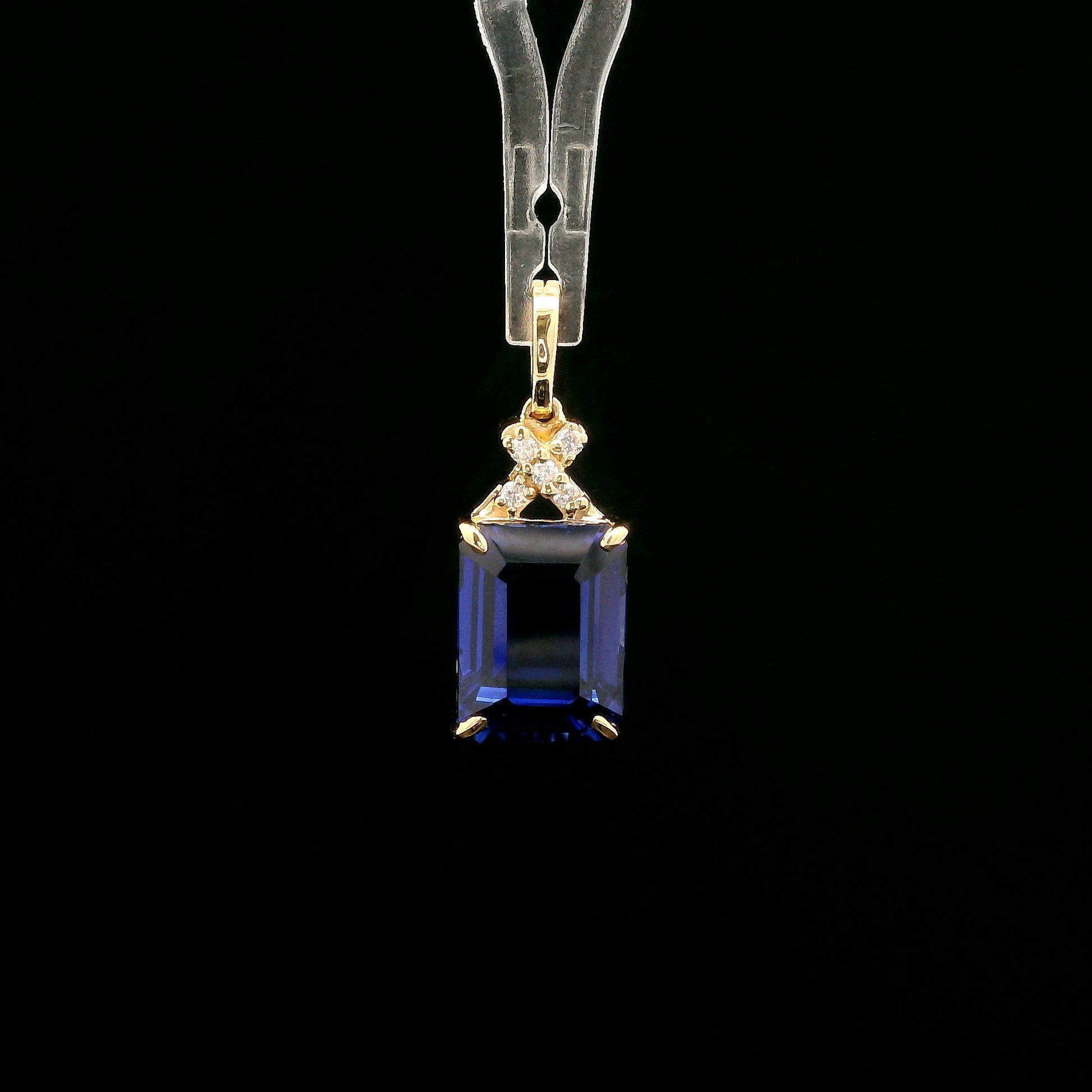 4.19 Ct Emerald Cut Lab Grown Sapphire 14K Gold Pendant