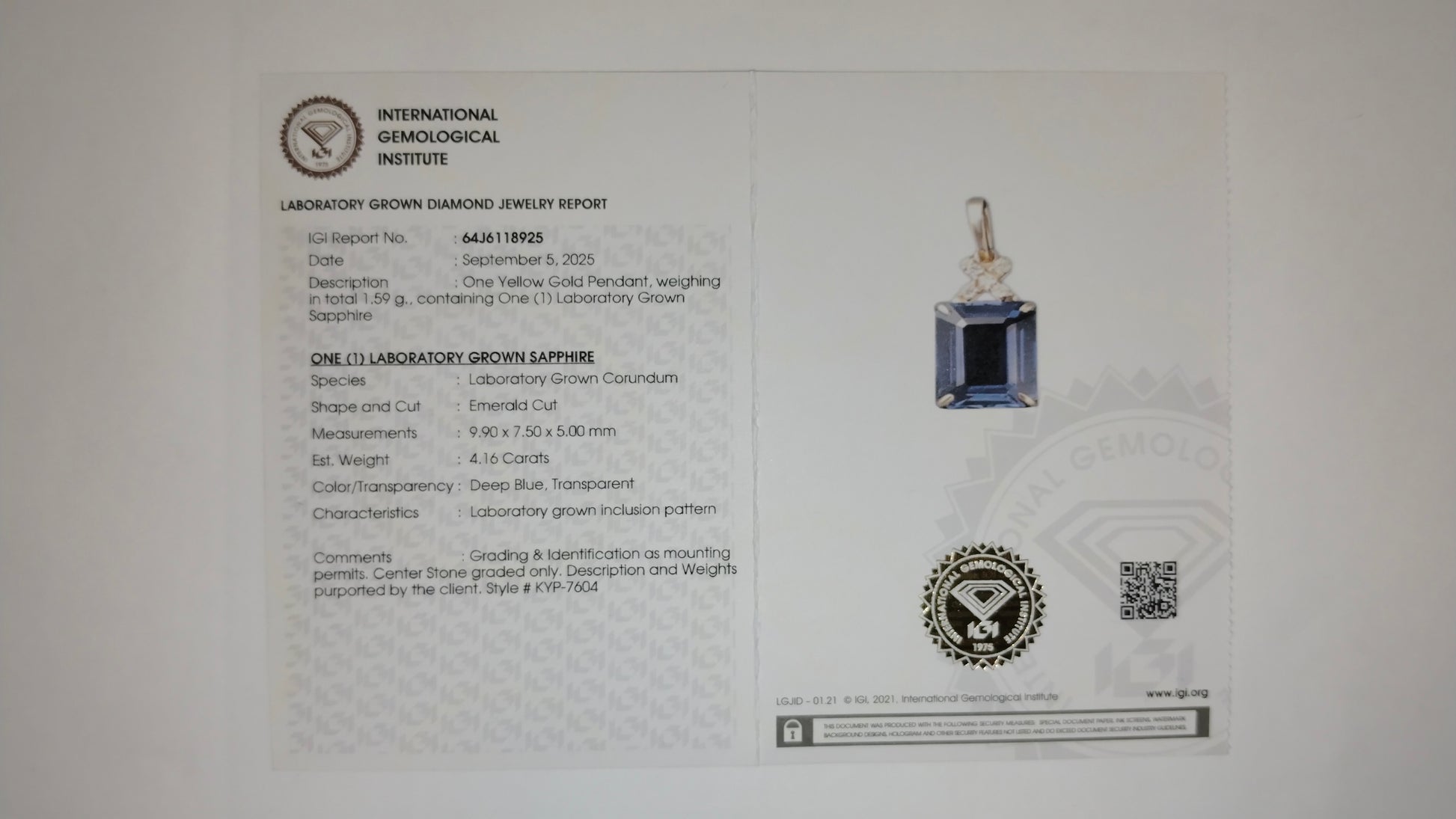 - Lab Name: International Gemological Institute (IGI)