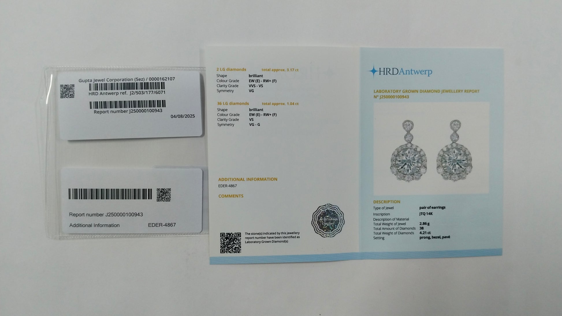 4.21-Carat Lab-Grown Diamond Round Cut Brilliant Earrings ? HRD Certified