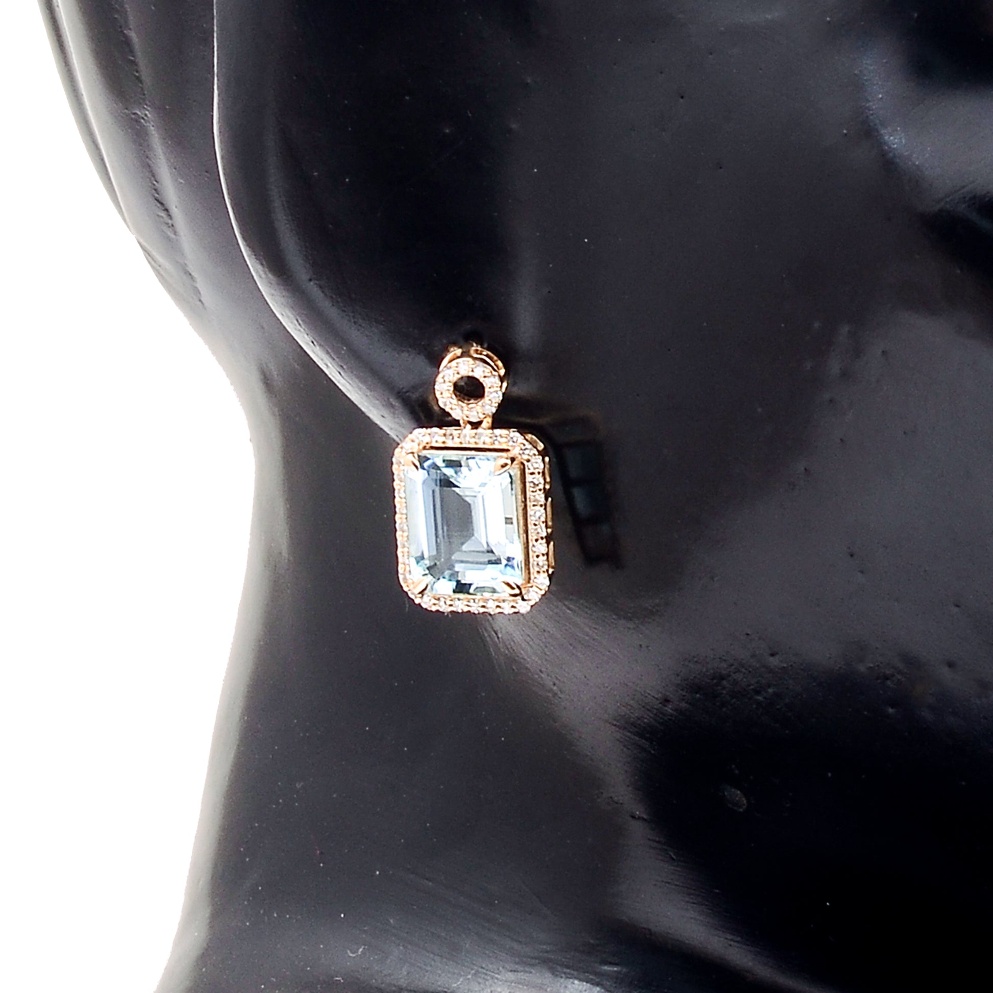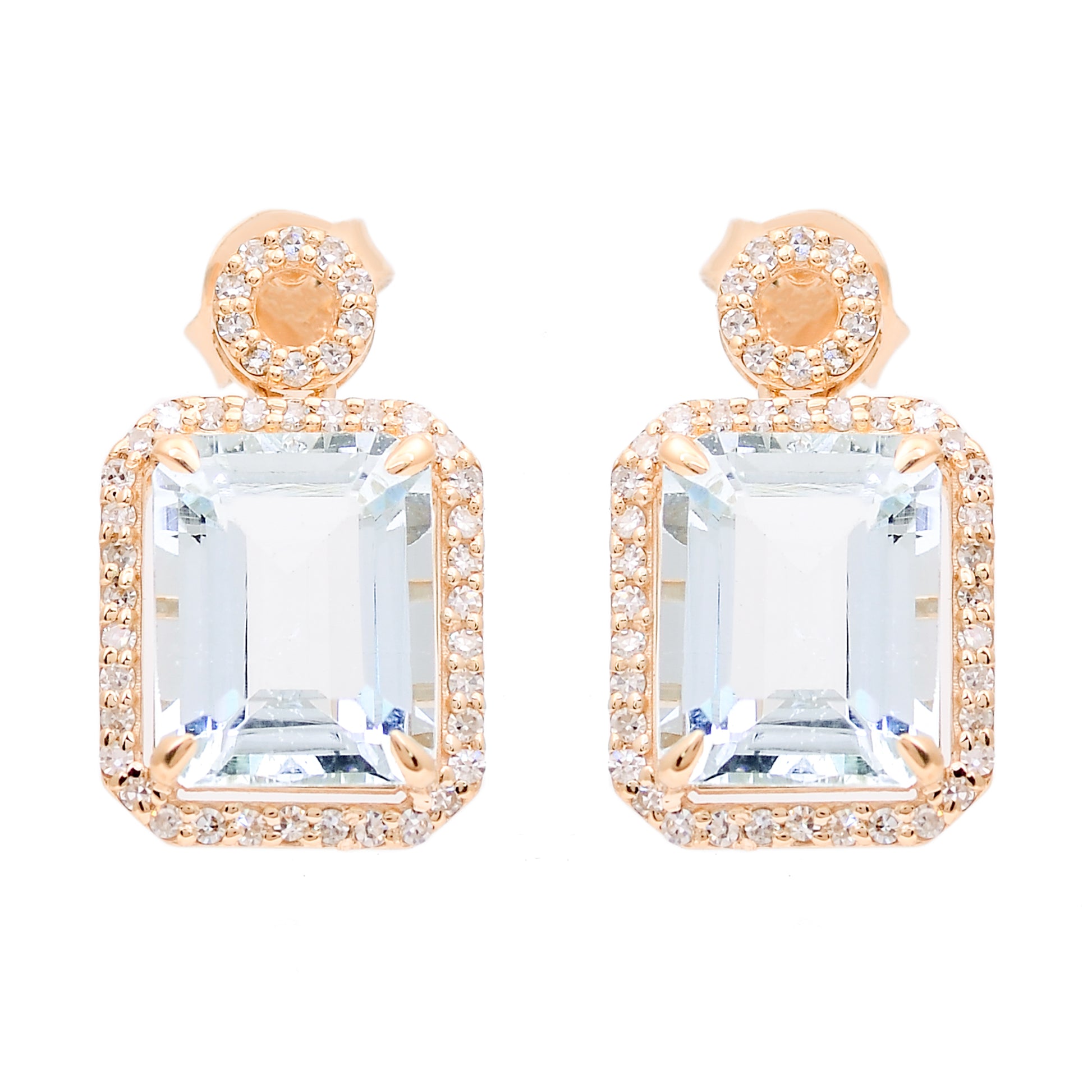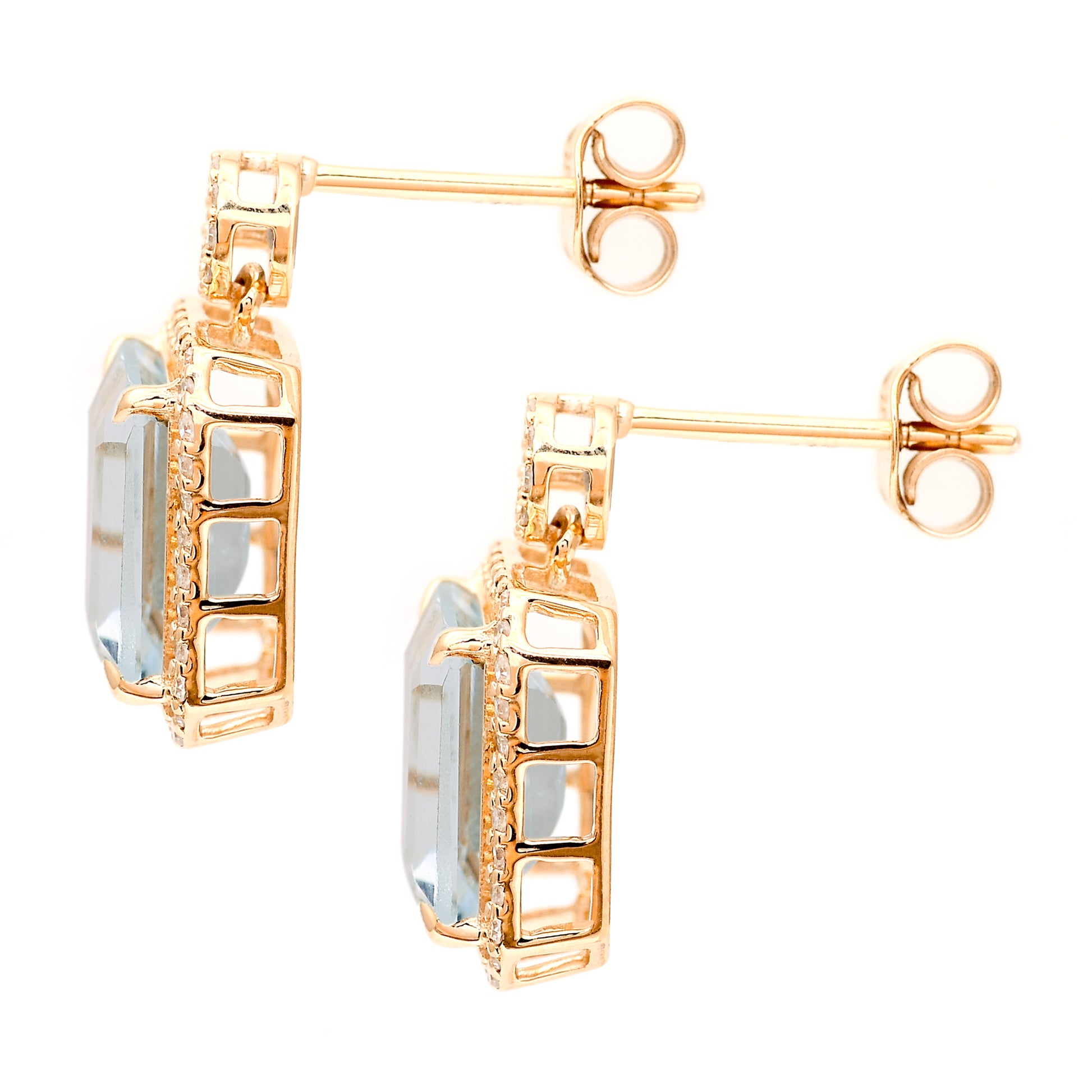 4.21 Ct Octagon Natural Aquamarine 14K Gold Earrings