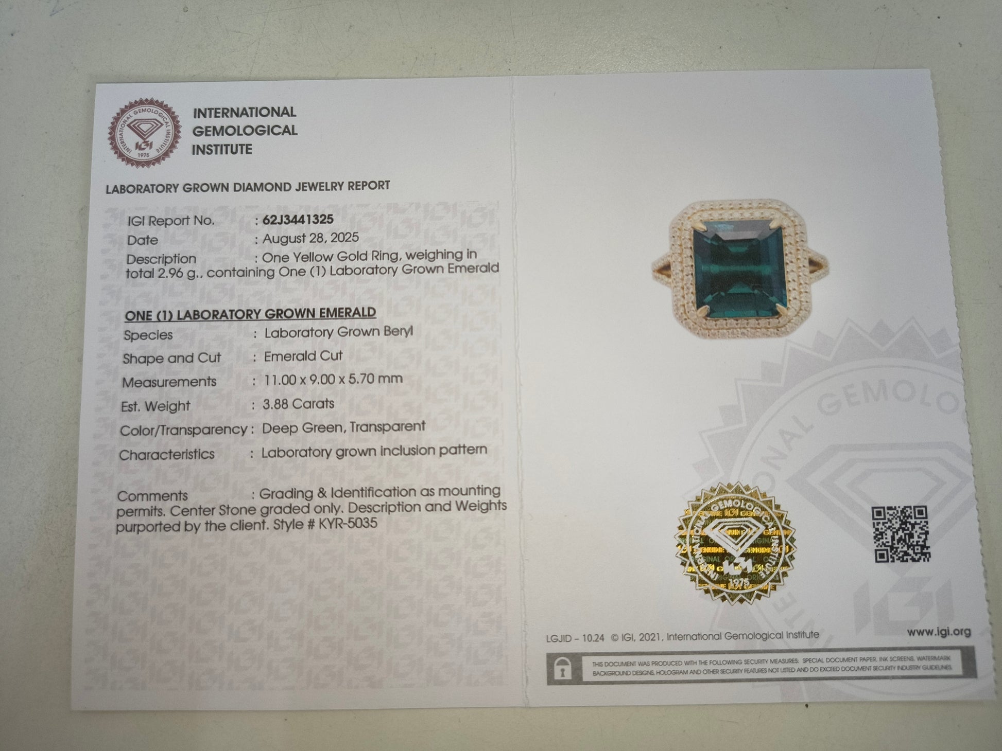 4.24 Total Carat Lab Grown Emerald 14K Gold Ring
