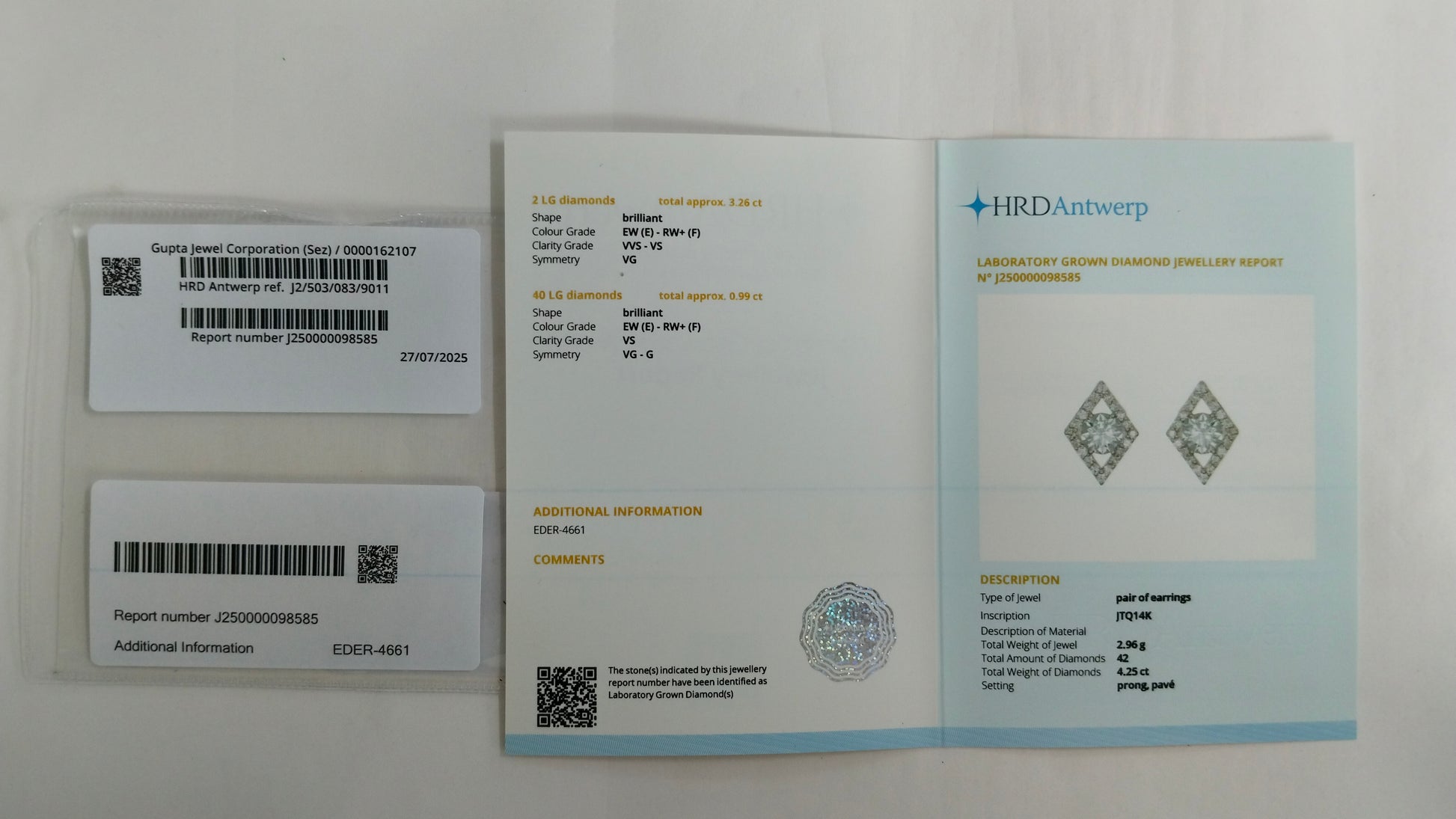 4.25 Carats Lab Grown Diamond 14K Gold Earrings
