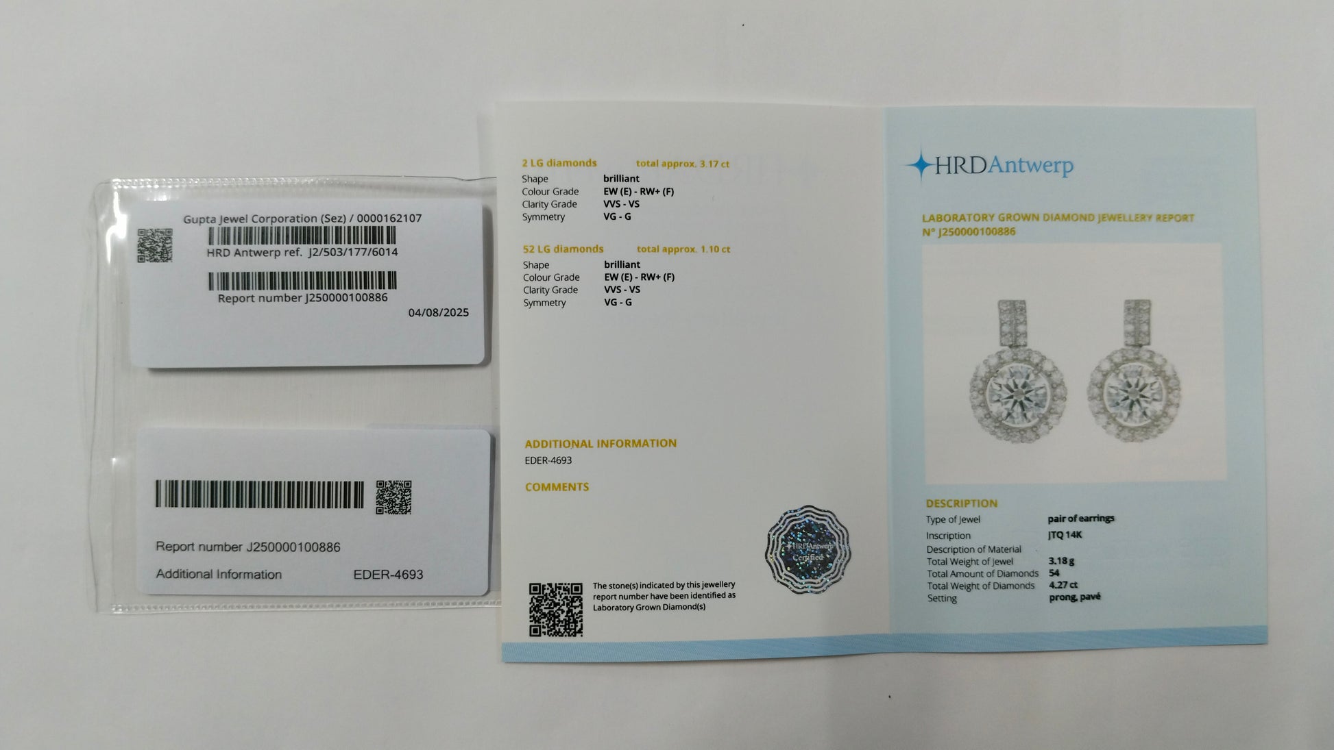 4.27-Carat Lab-Grown Diamond Round Cut Brilliant Earrings ? HRD Certified