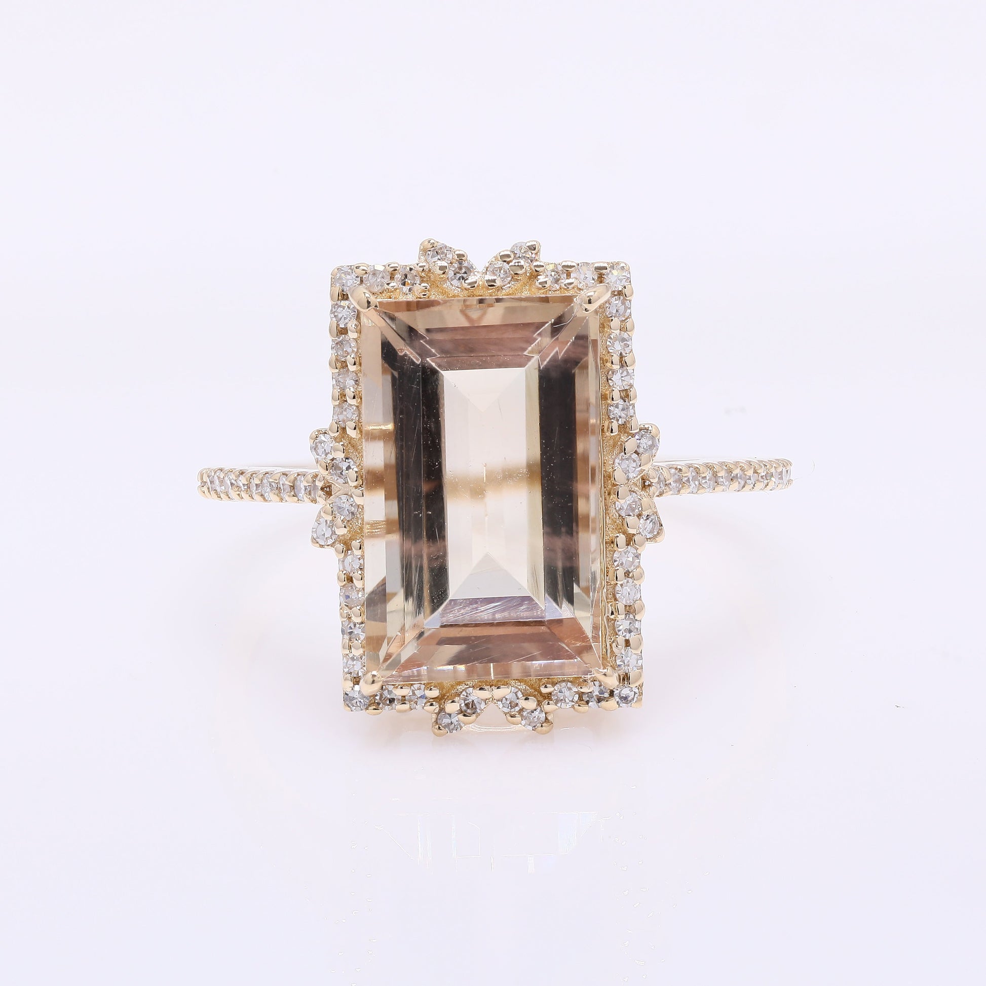4.28 Ct Rectangular Step Cut Natural Plagioclase Feldspar Sunstone 14K Gold Ring