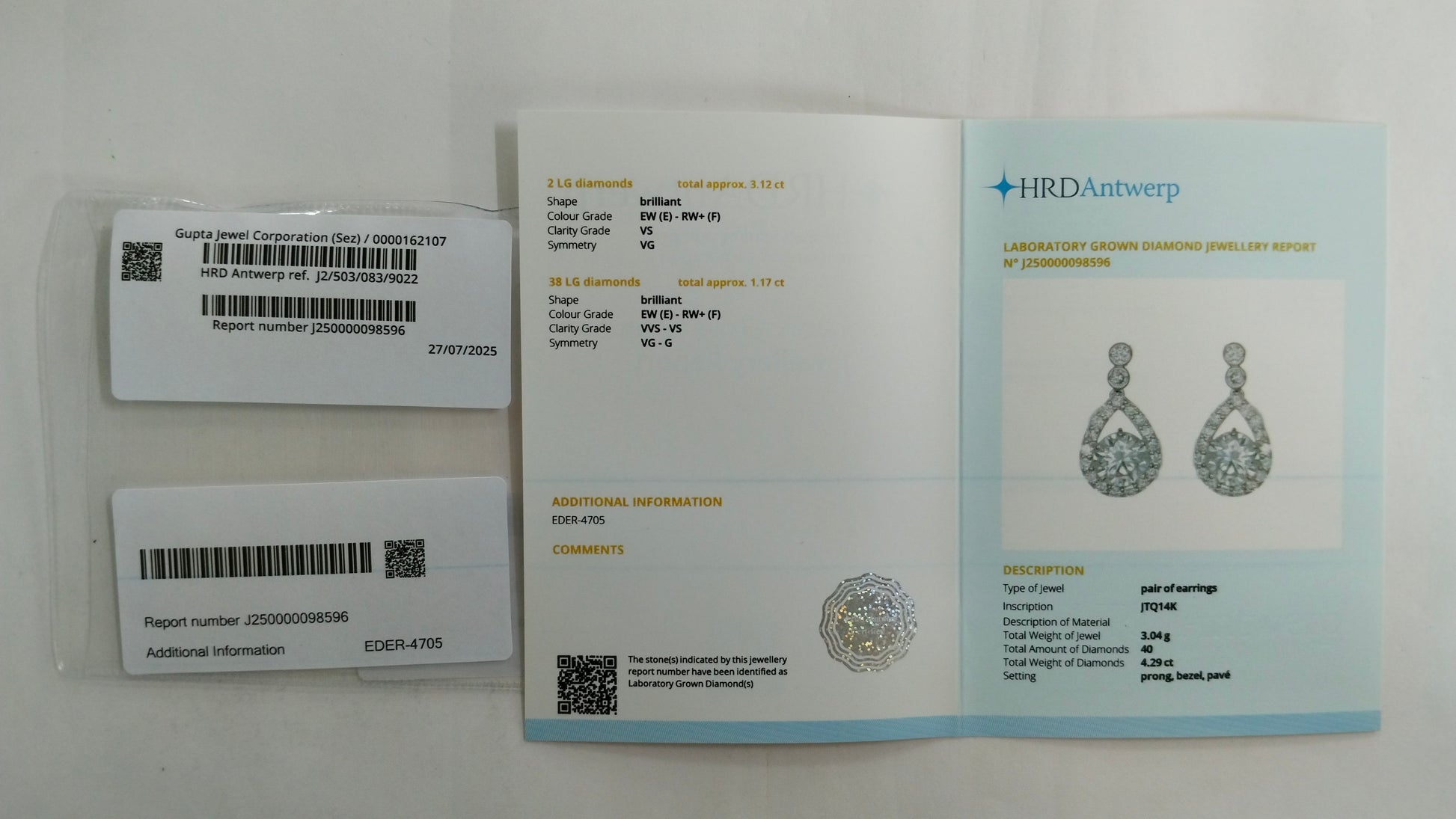 4.29 Carats Lab Grown Diamond 14K Gold Earrings