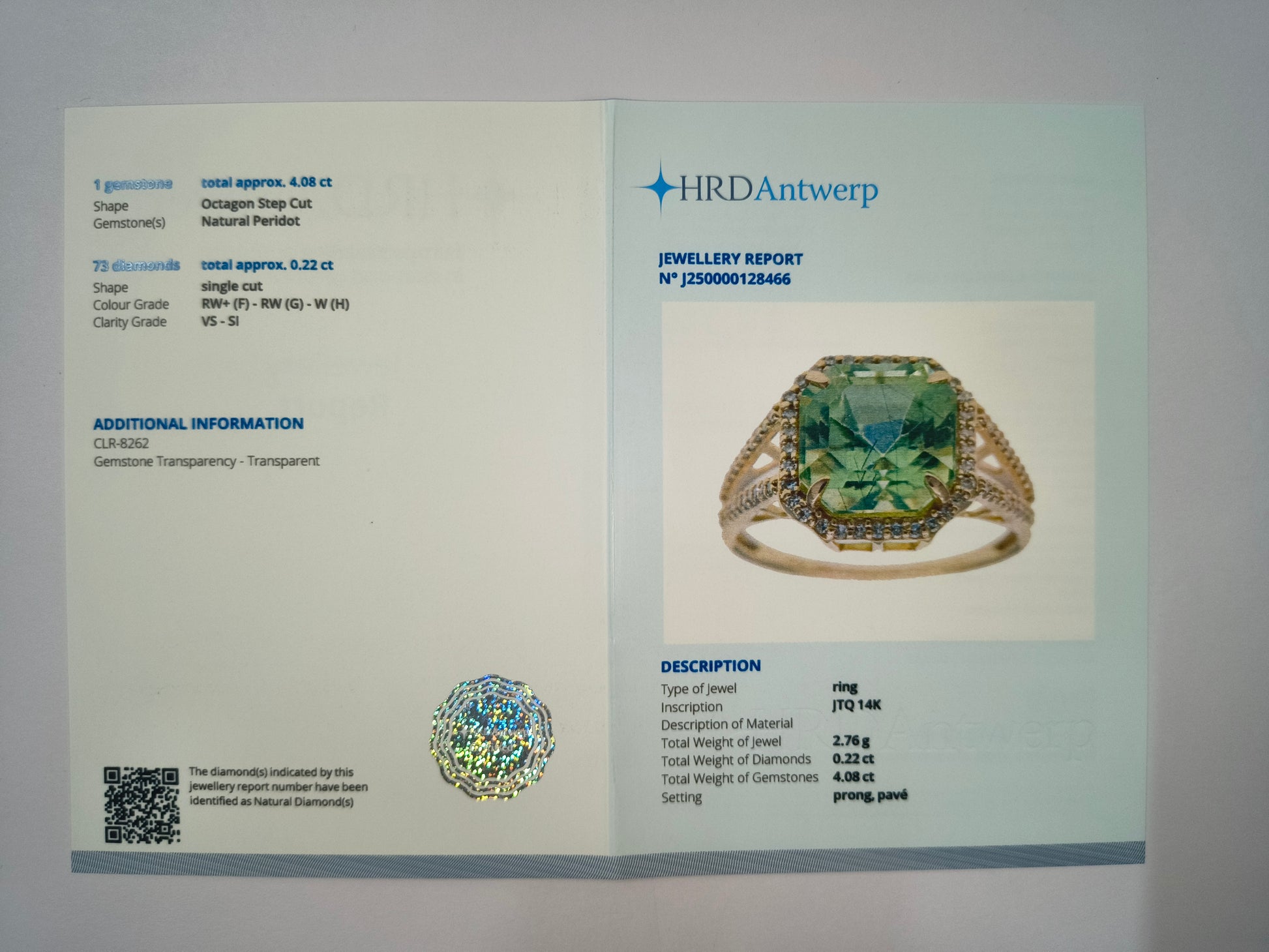 4.30 Ct Octagon Natural Eridot 14K Gold Ring