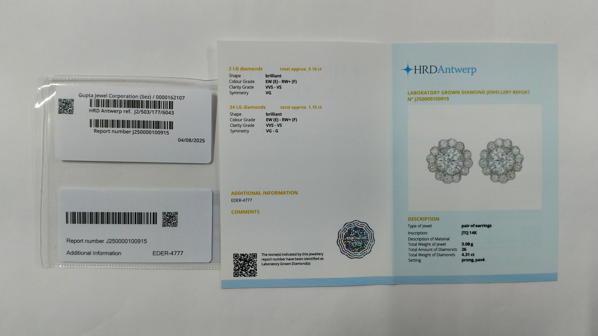 4.31-Carat Lab-Grown Diamond Round Cut Brilliant Earrings ? HRD Certified