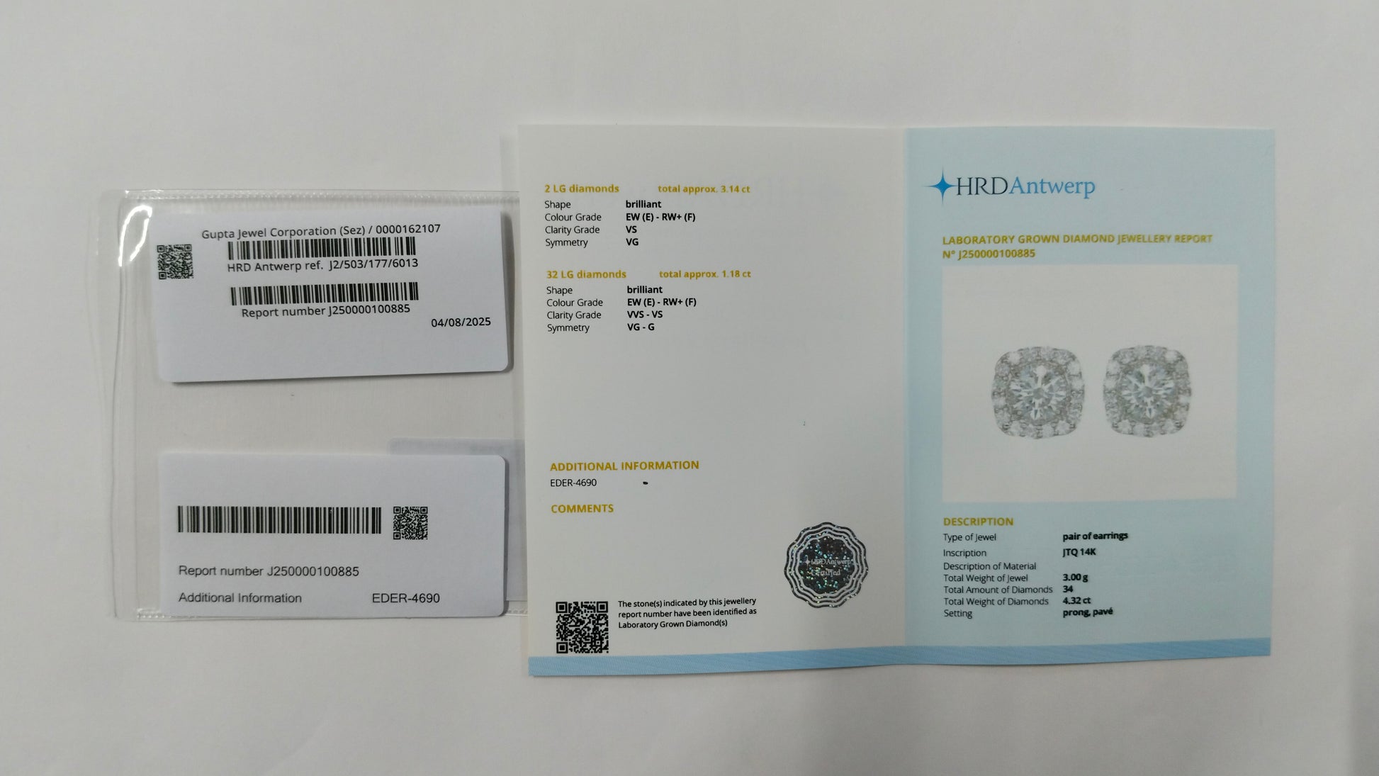 4.32-Carat Lab-Grown Diamond Round Cut Brilliant Earrings ? HRD Certified