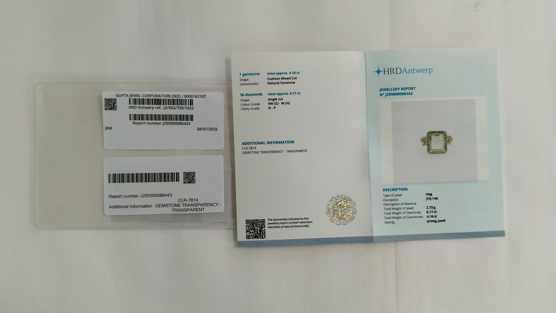 4.33 Ct Cushion Mixed Cut Natural Sunstone 14K Gold Ring