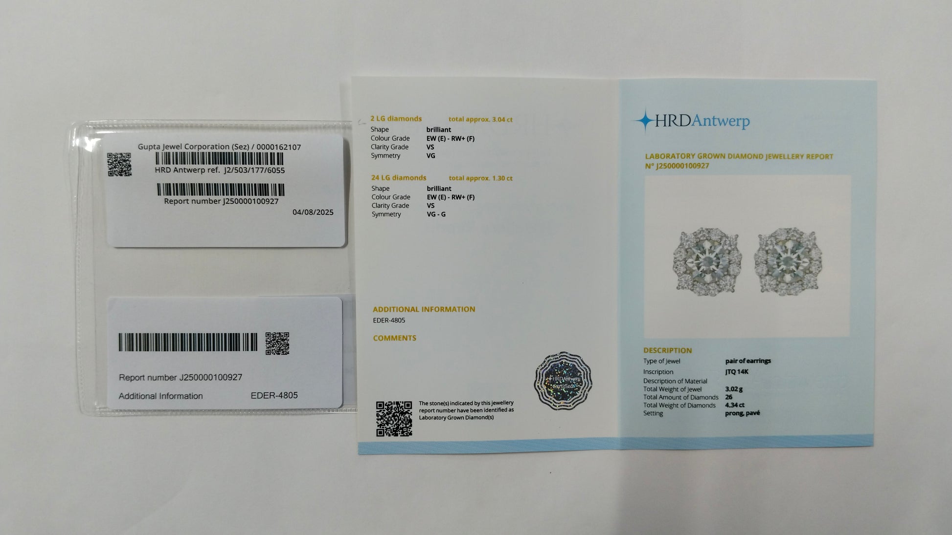 4.34-Carat Lab-Grown Diamond Round Cut Brilliant Earrings ? HRD Certified