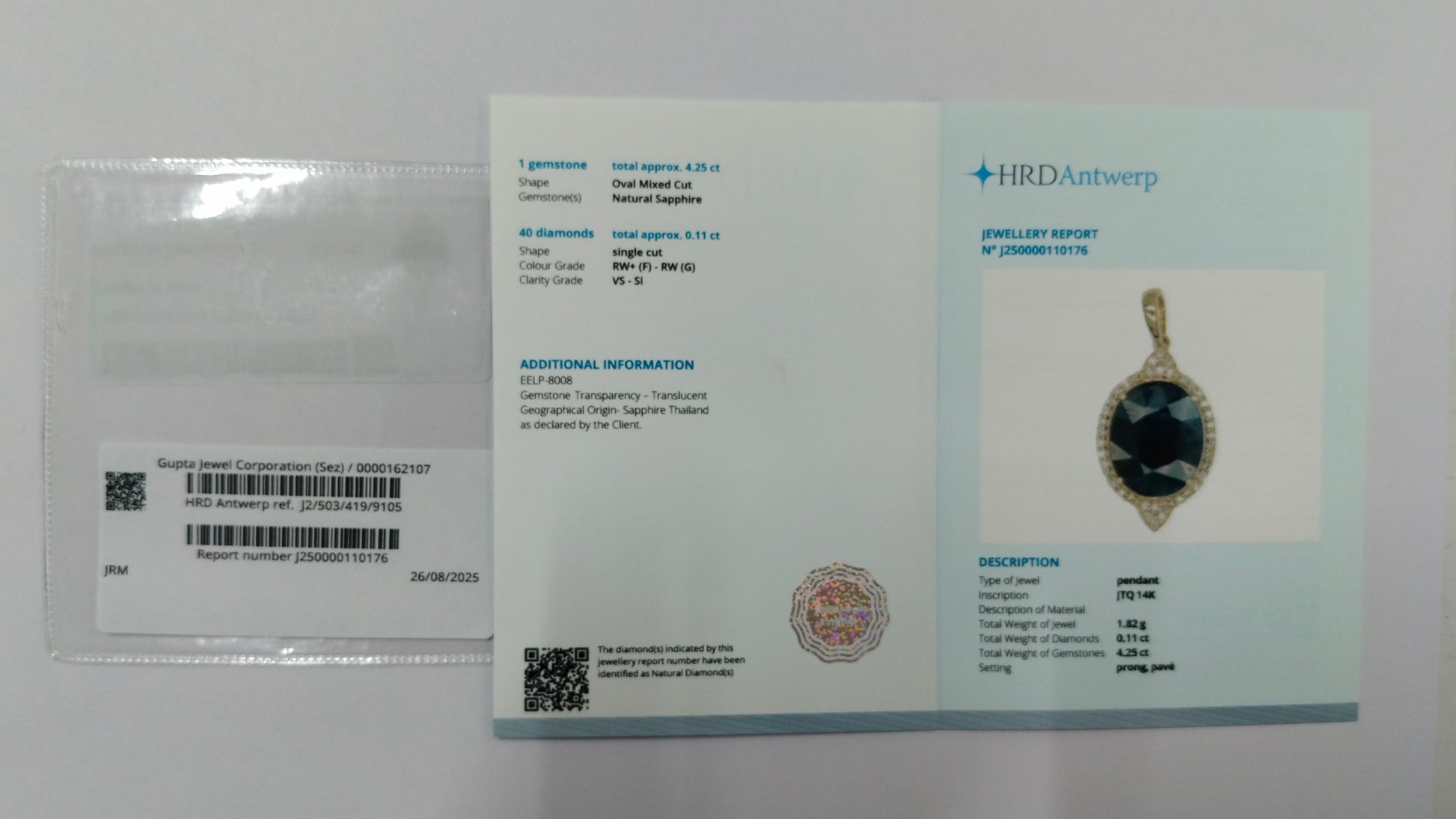 4.36 Ct Oval Mixed Cut Natural Sapphire 14K Gold Pendant