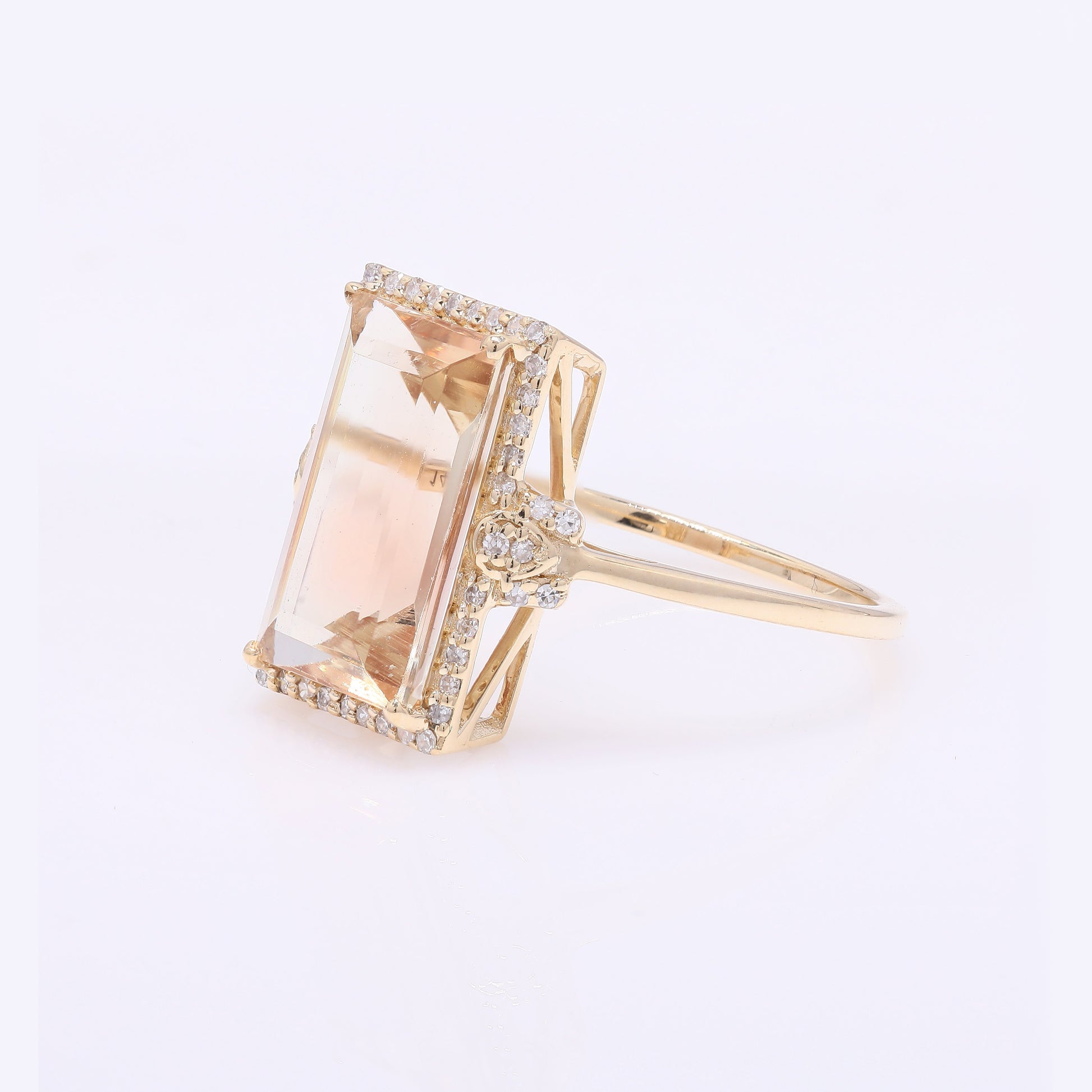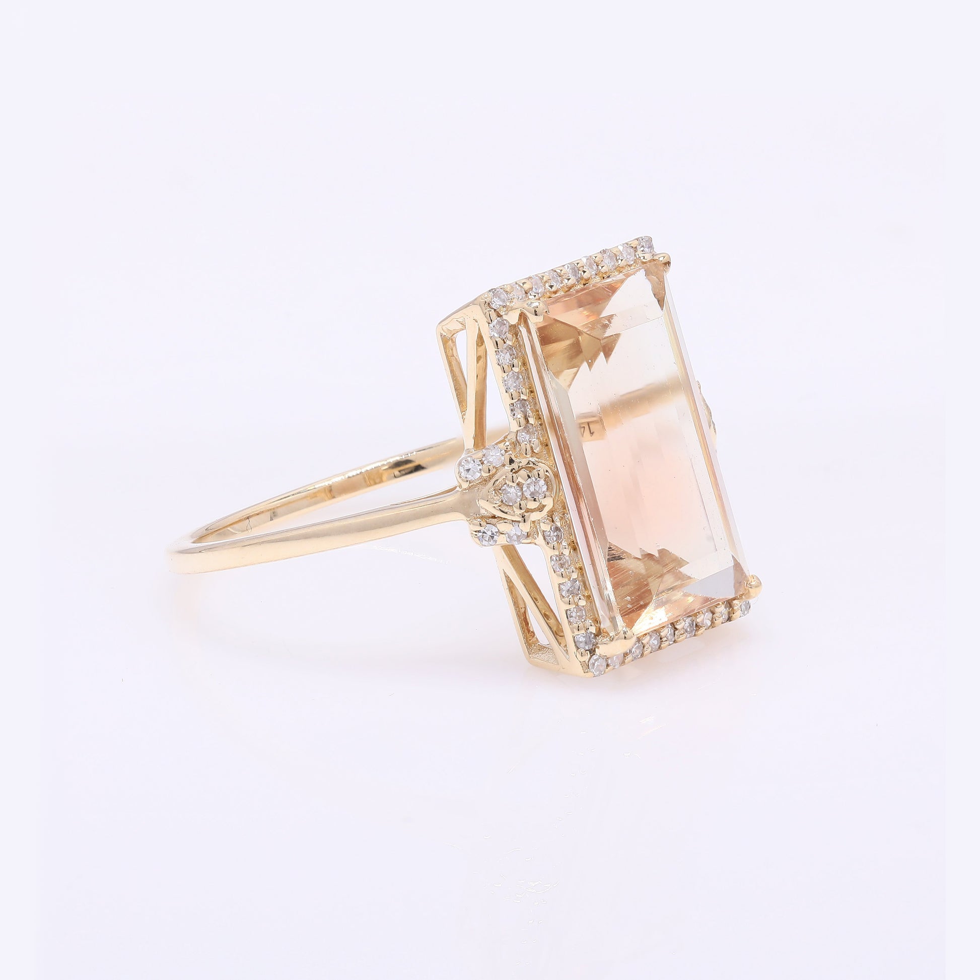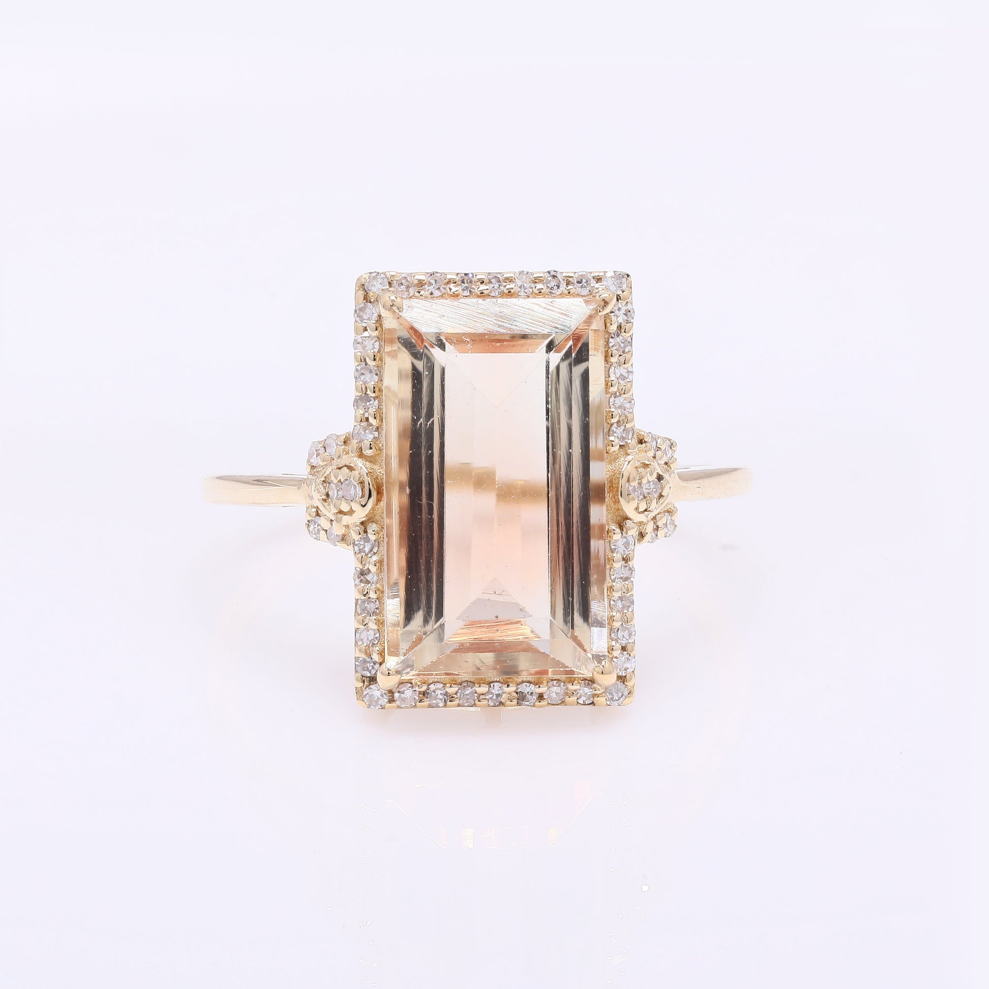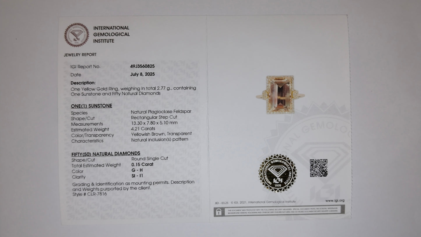 4.36 Ct Rectangular Step Cut Natural Plagioclase Feldspar Sunstone 14K Gold Ring