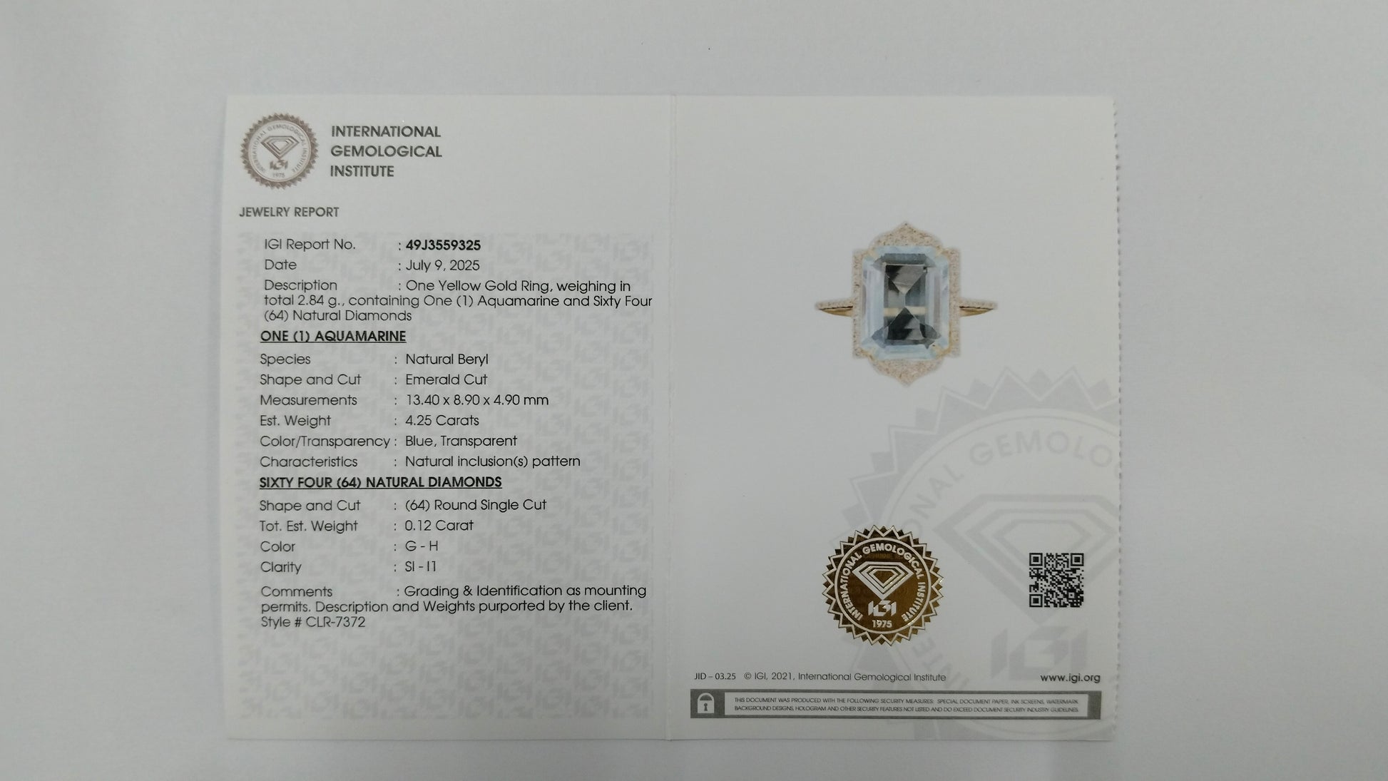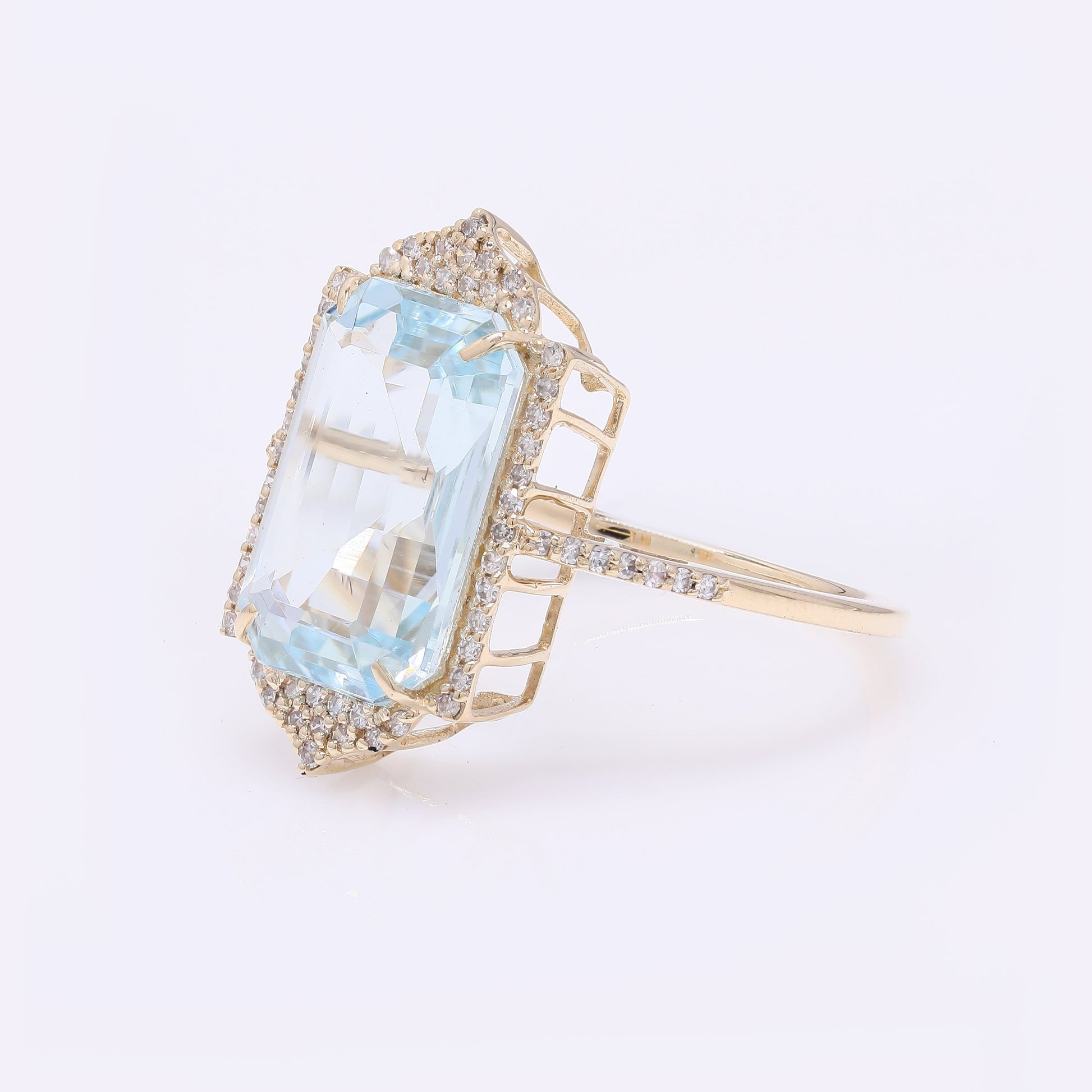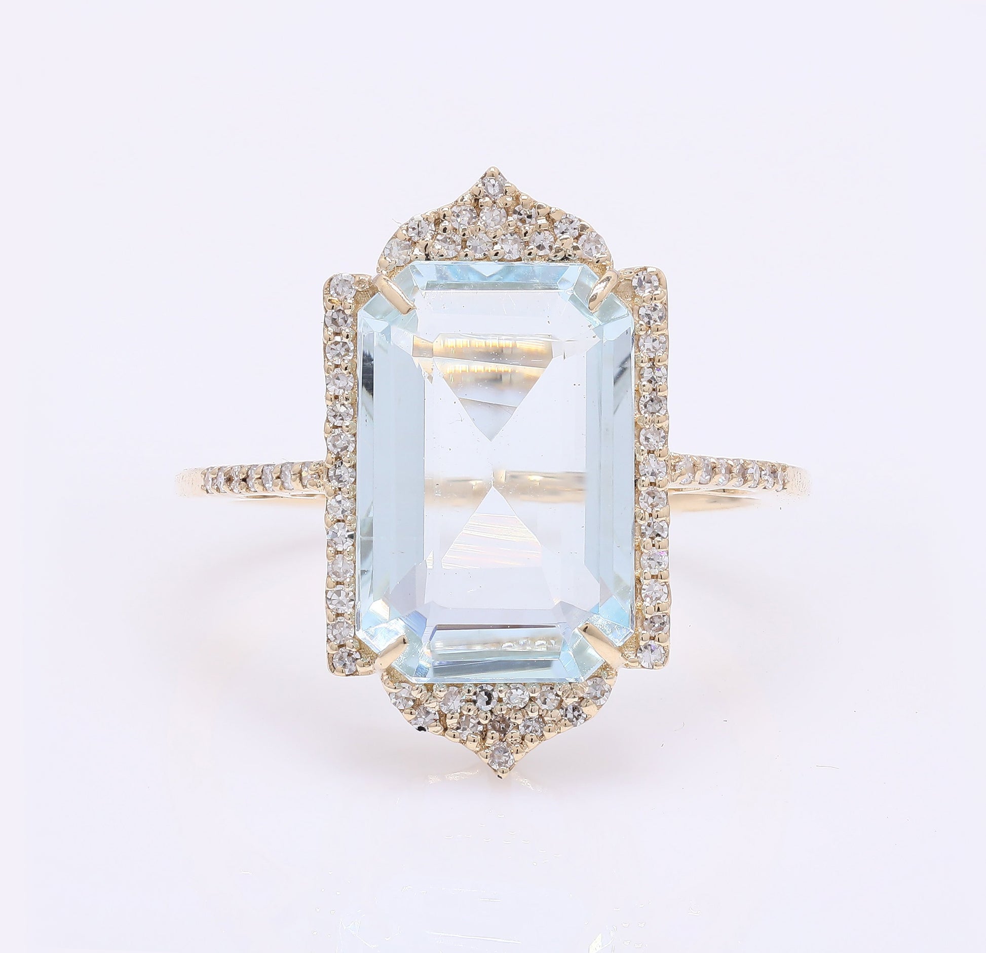 4.37 Ct Emerald Cut Natural Beryl Aquamarine 14K Gold Ring