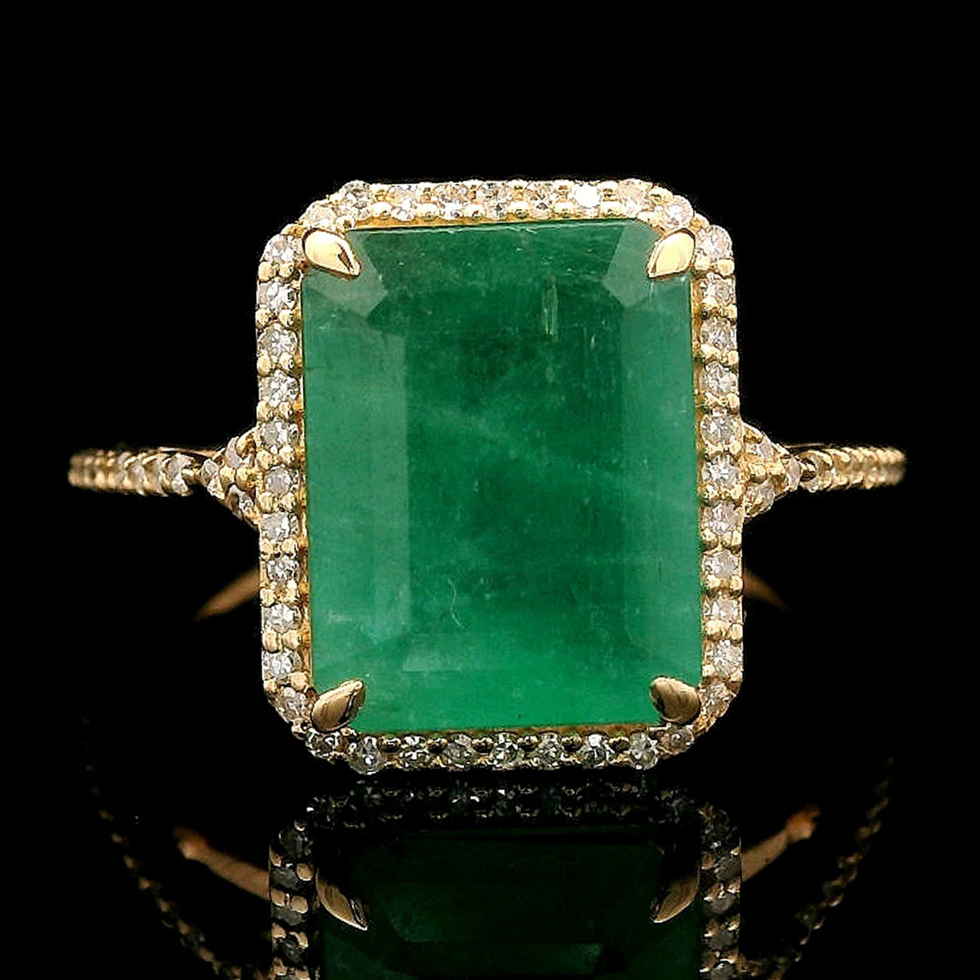 4.37 Ct Octagon Step Cut Natural Emerald 14K Gold Ring
