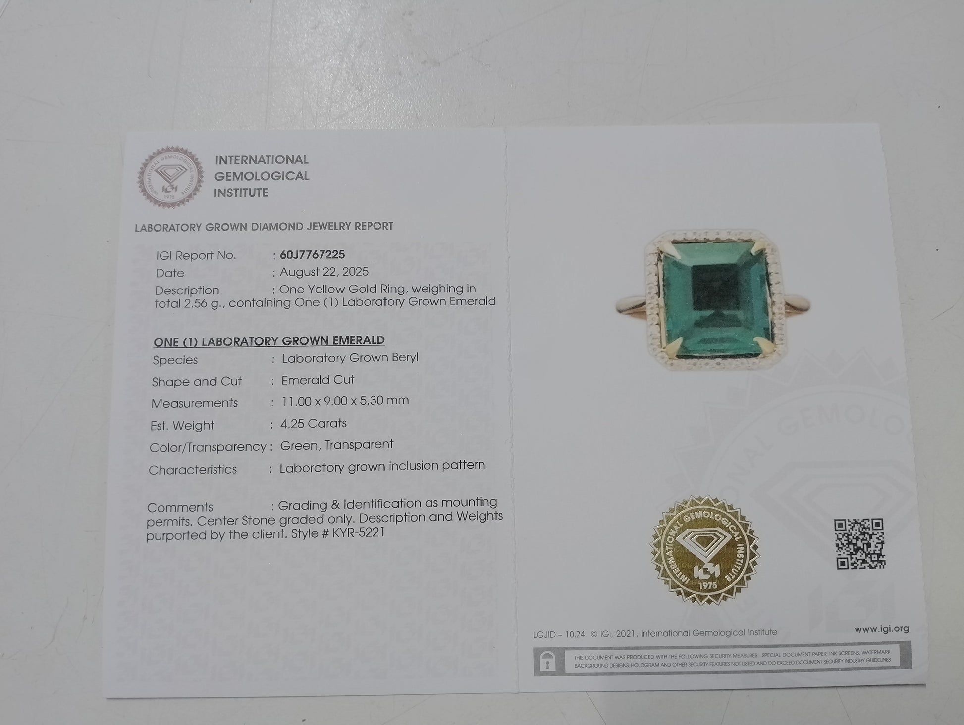 4.39 Ct Emerald Cut Lab Grown Emerald 14K Gold Ring