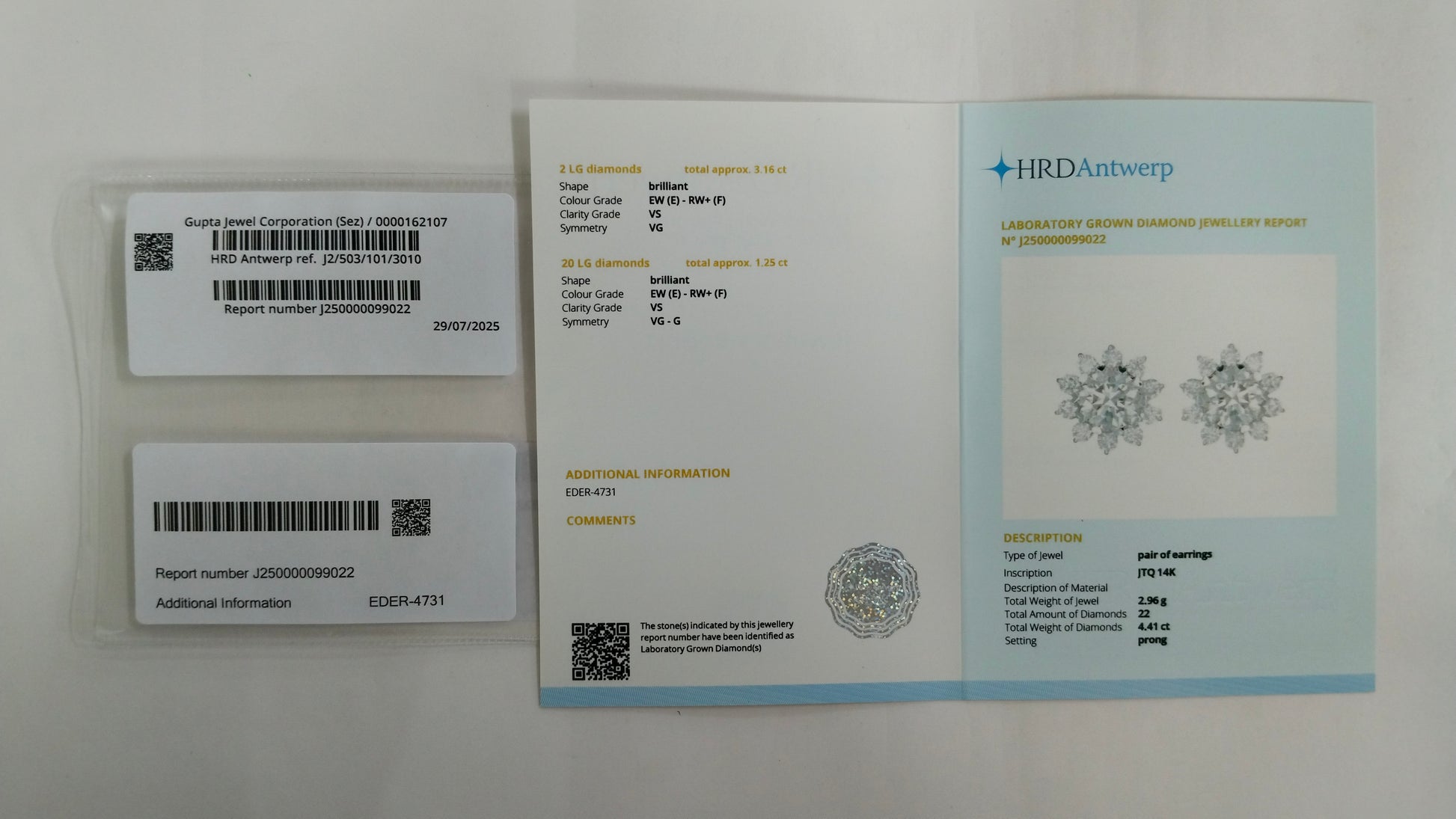 4.41 Carats Lab Grown Diamond 14K Gold Earrings