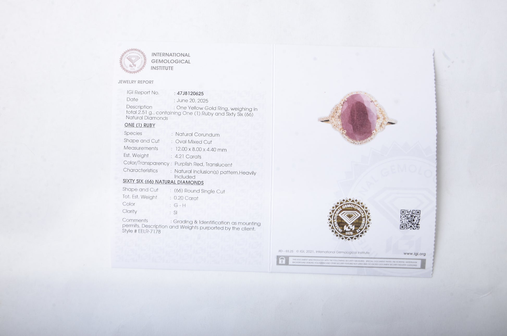 - Lab Name: International Gemological Institute (IGI)