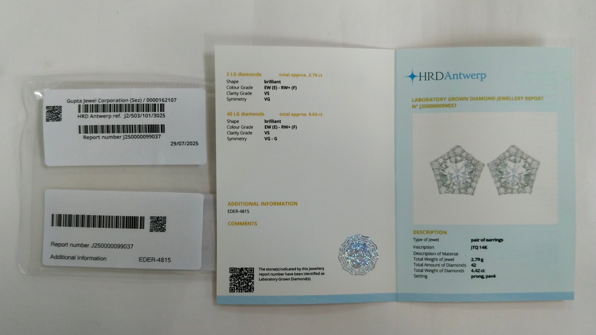 4.42 Carats Lab Grown Diamond 14K Gold Earrings