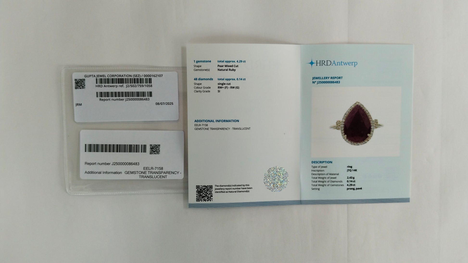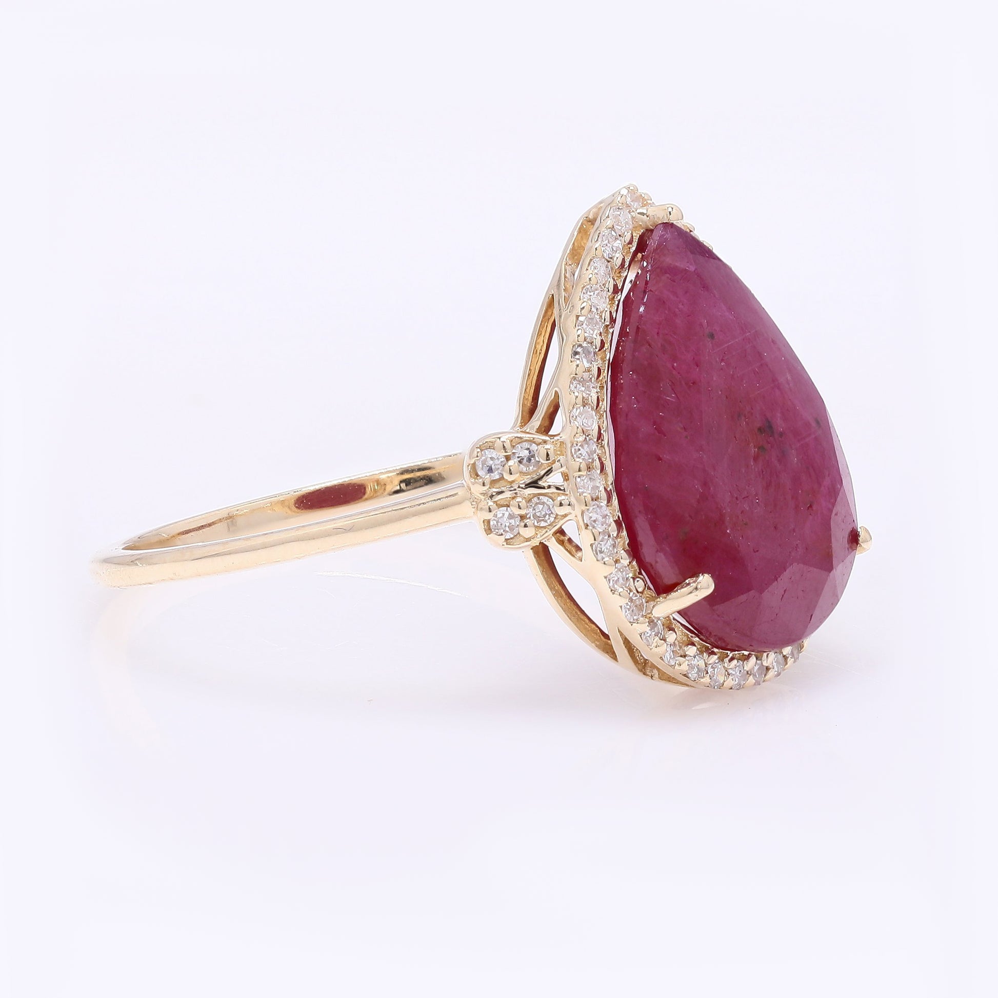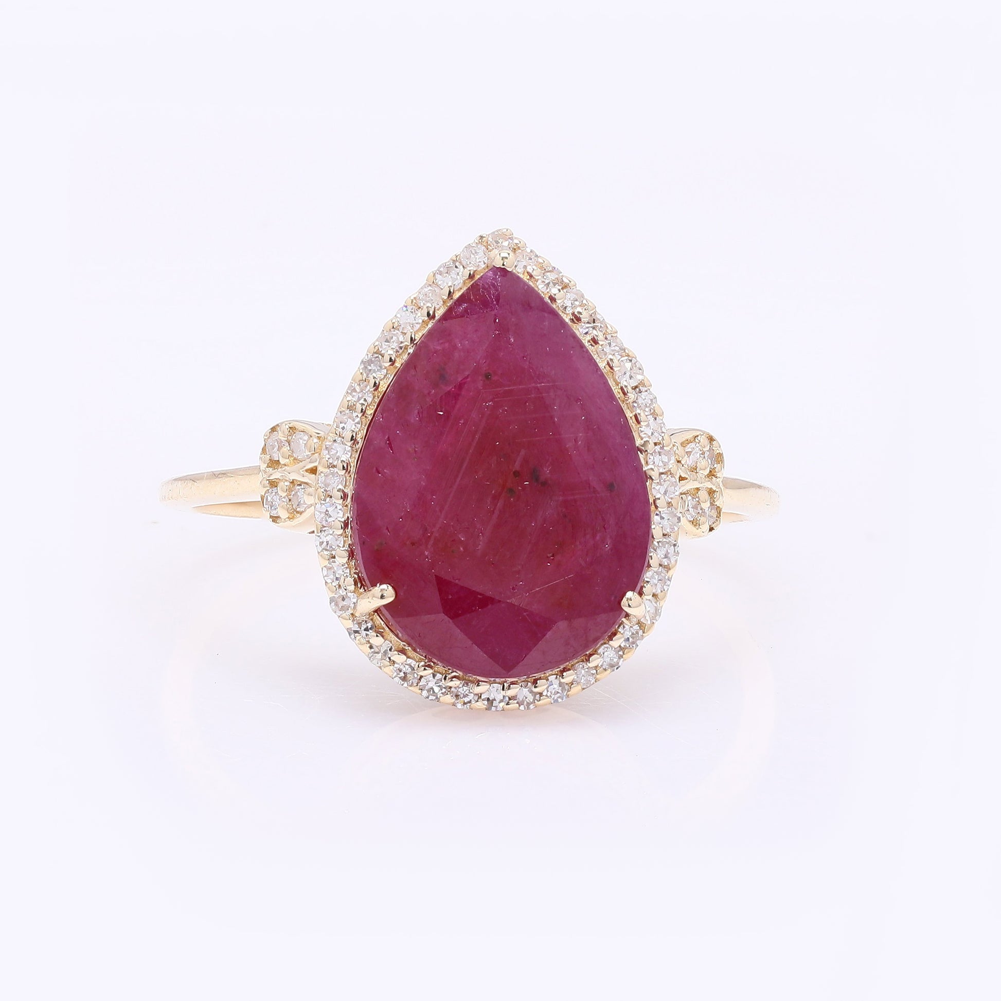 4.43 Ct Pear Mixed Cut Natural Ruby 14K Gold Ring