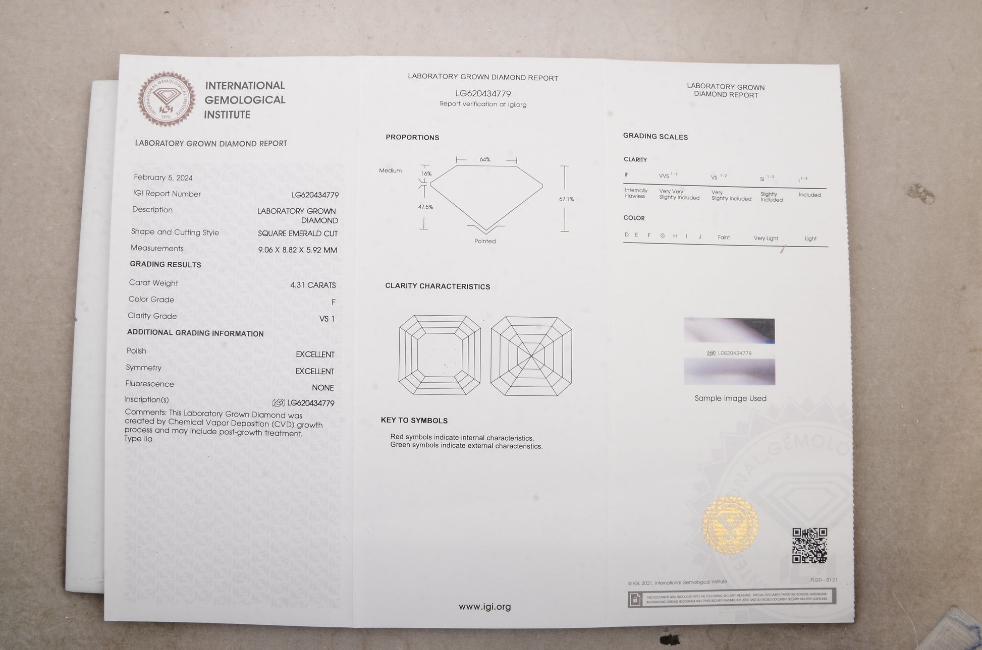 4.45-Carat Lab-Grown Diamond Square Emerald Cut Brilliant Ring ? IGI Certified