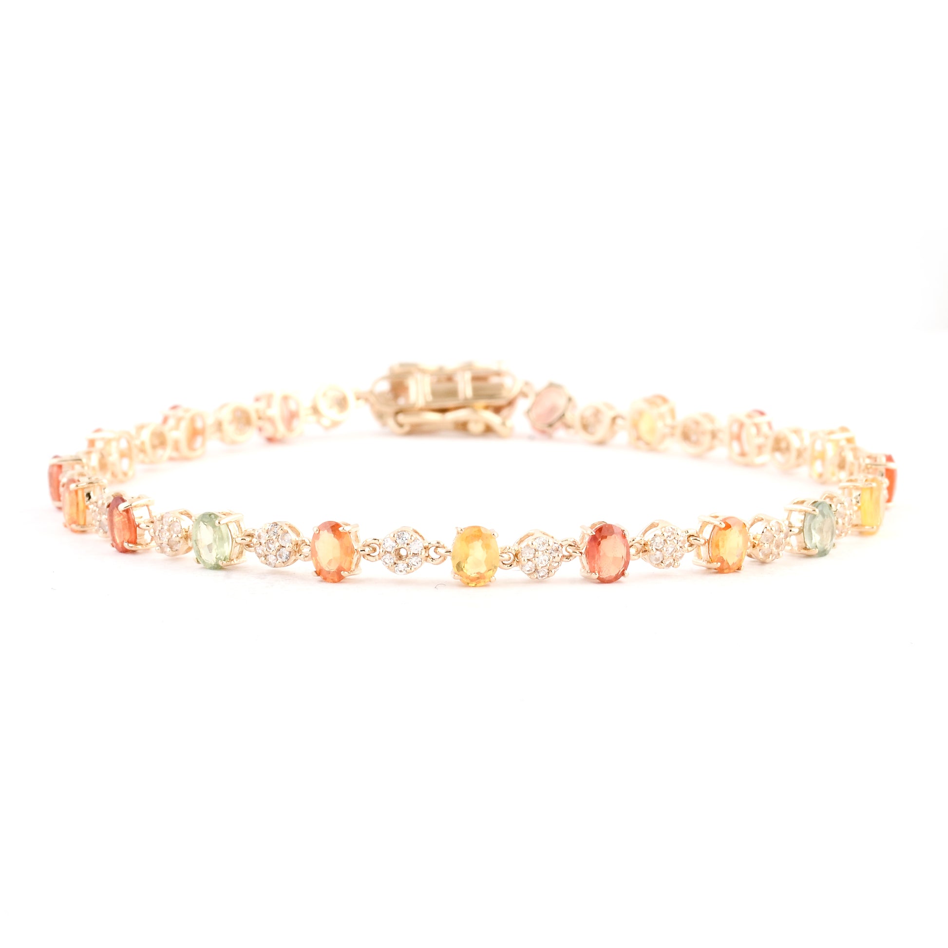 4.47 Ct Oval Multi Sapphire 14K Gold Bracelet