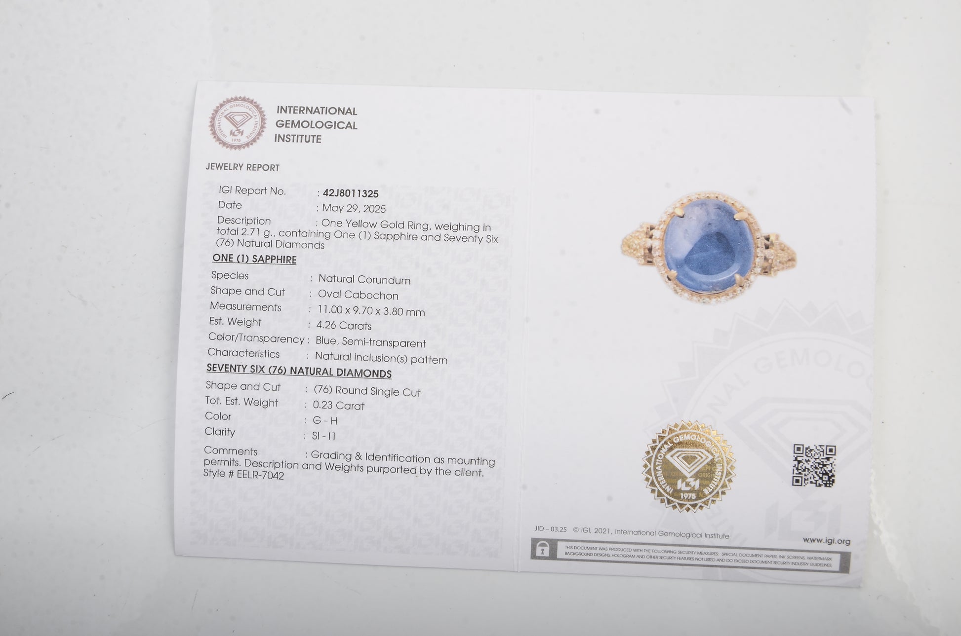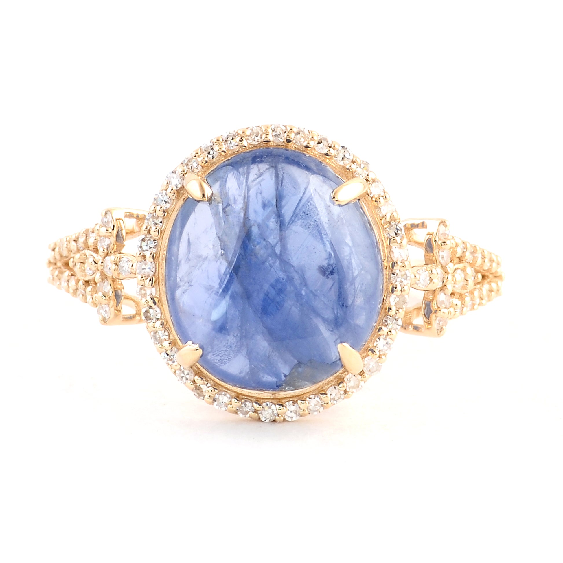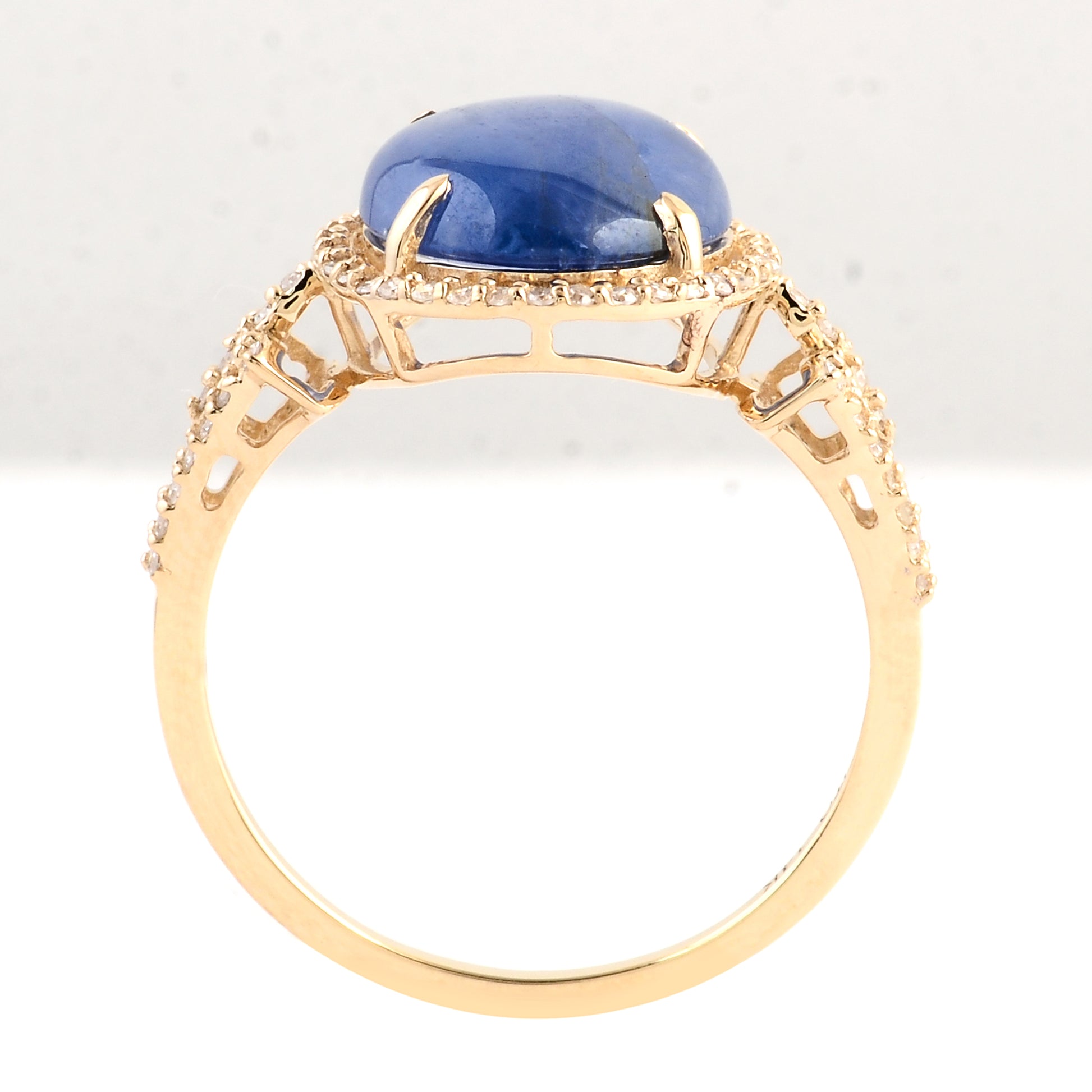 4.49 Ct Oval Cabochon Natural Corunum Sapphire 14K Gold Ring