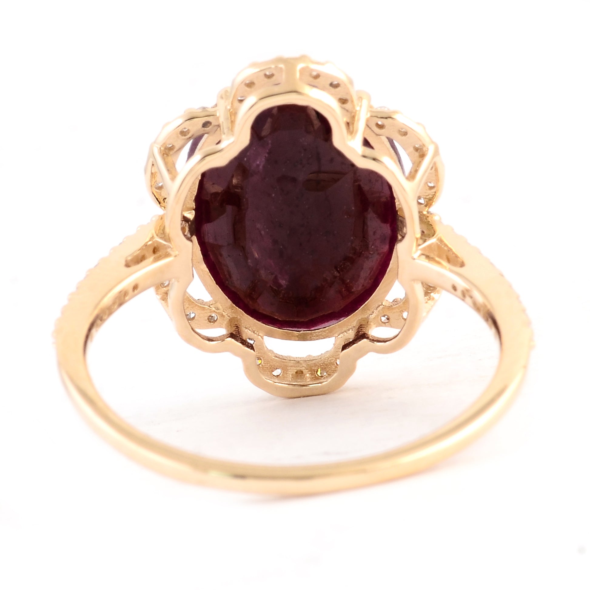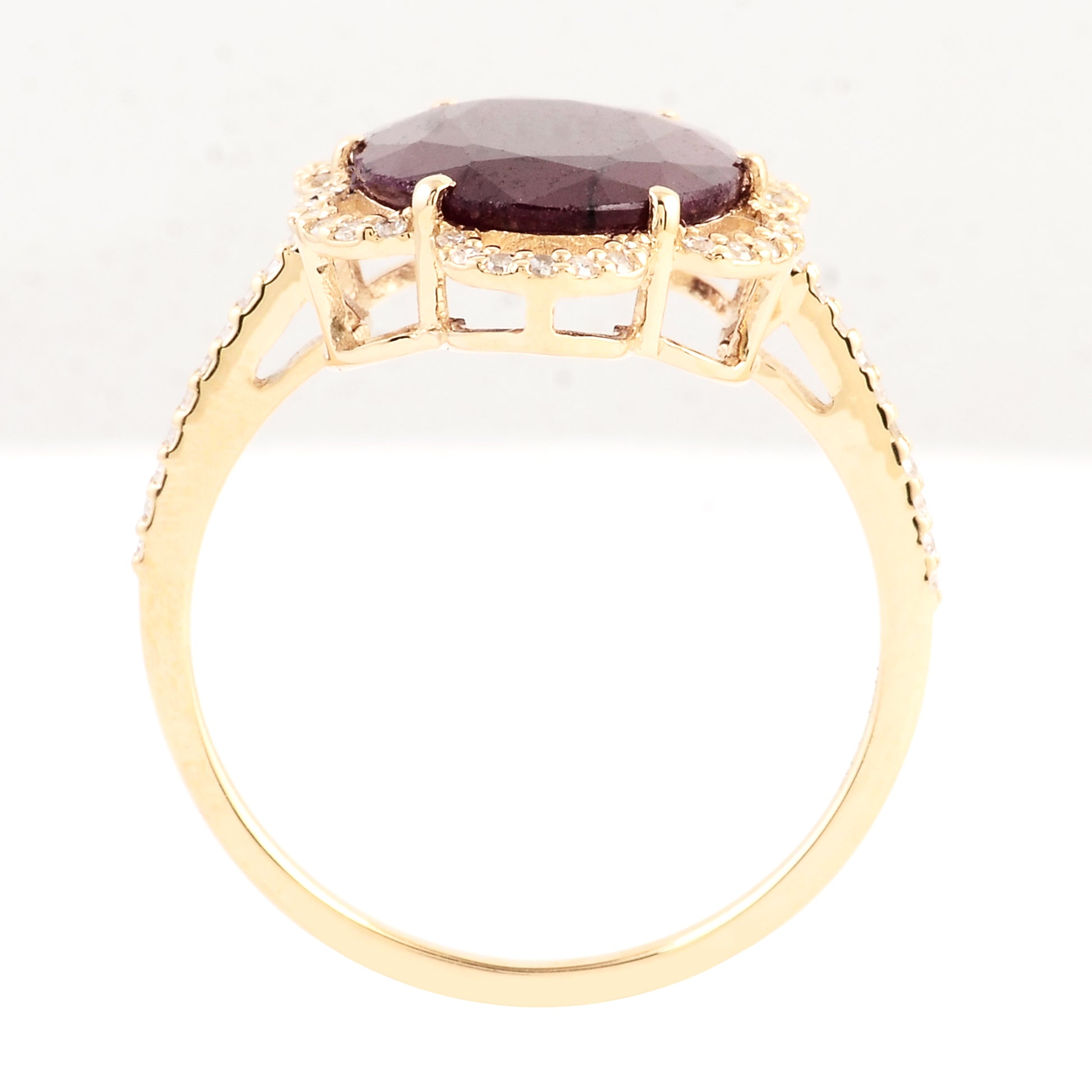 4.54 Ct Oval Mixed Cut Natural Corundum Ruby 14K Gold Ring