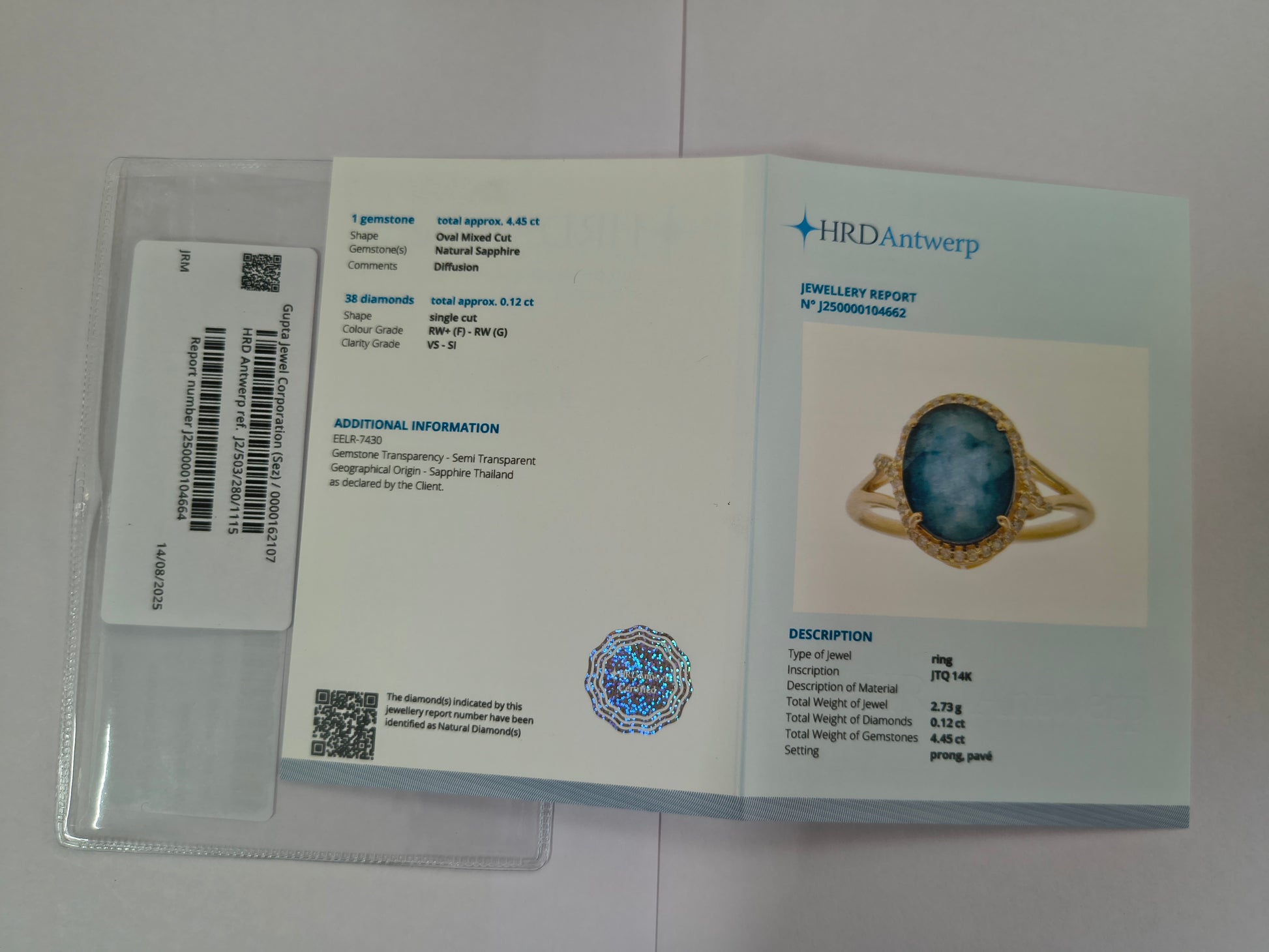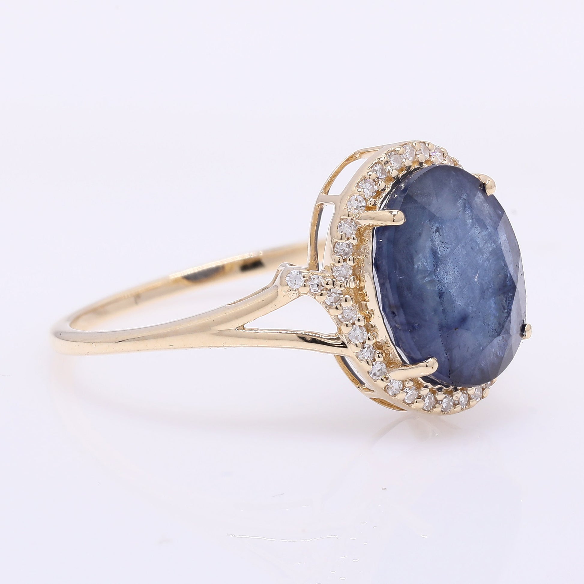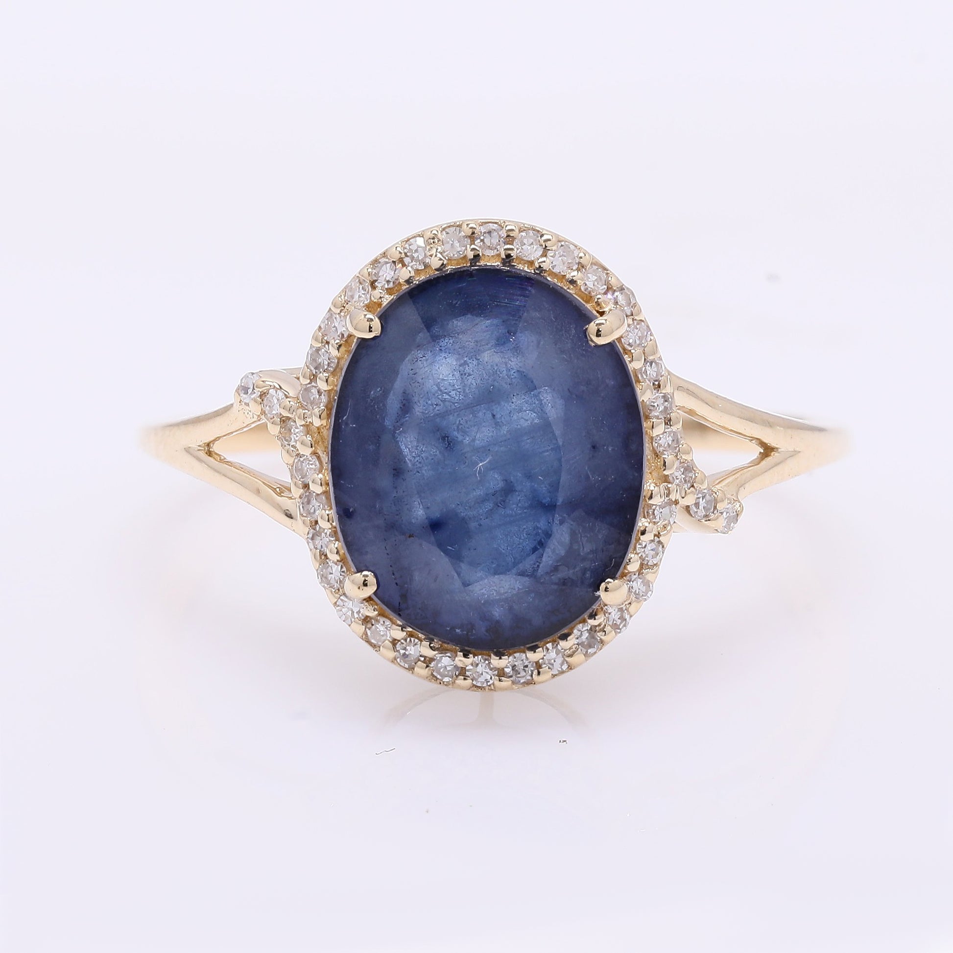 4.57 Ct Oval Mixed Cut Natural Sapphire 14K Gold Ring