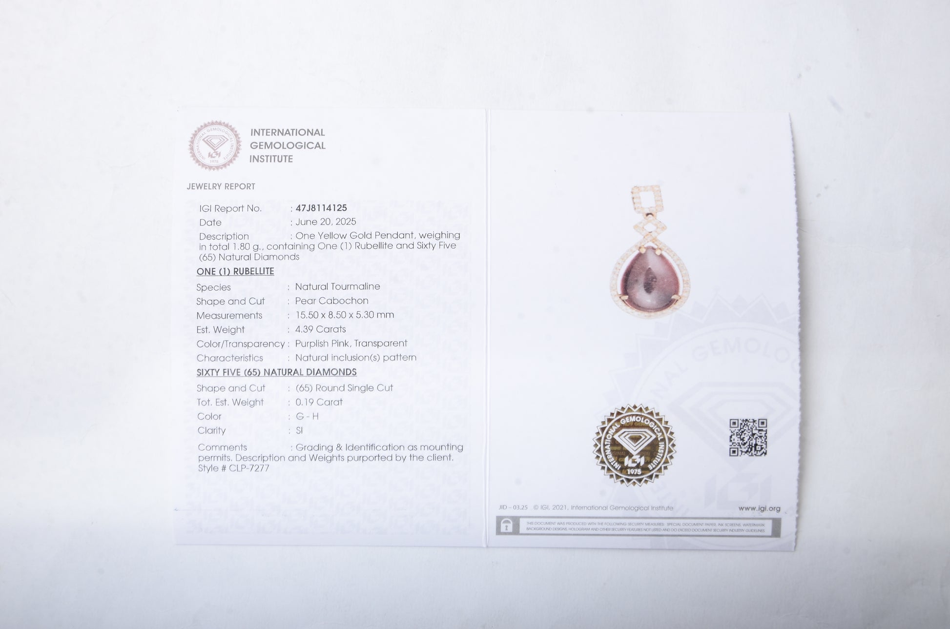 4.58 Total Carat Natural Tourmaline 14K Gold Pendant