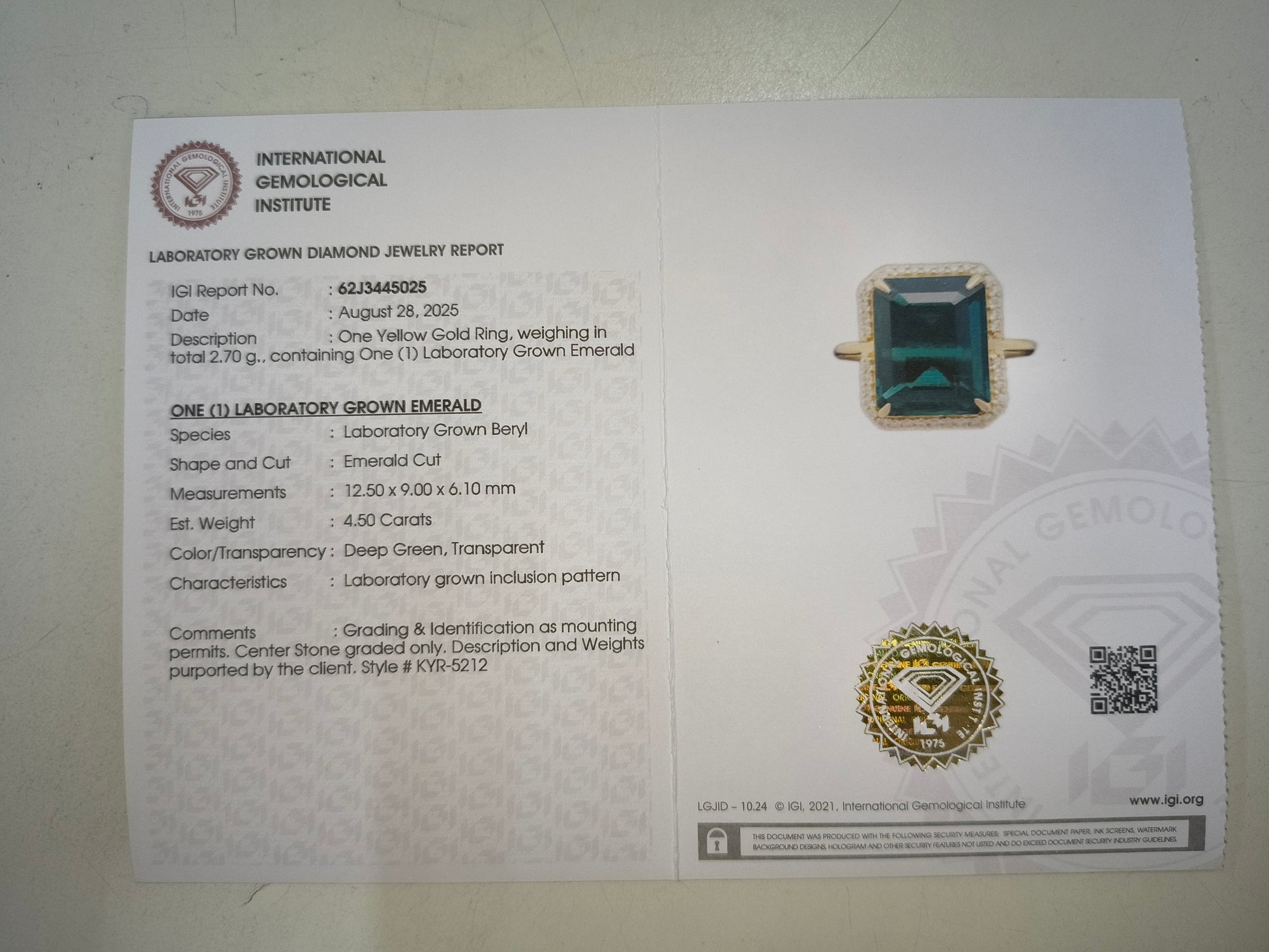 4.61 Ct Emerald Cut Lab Grown Emerald 14K Gold Ring