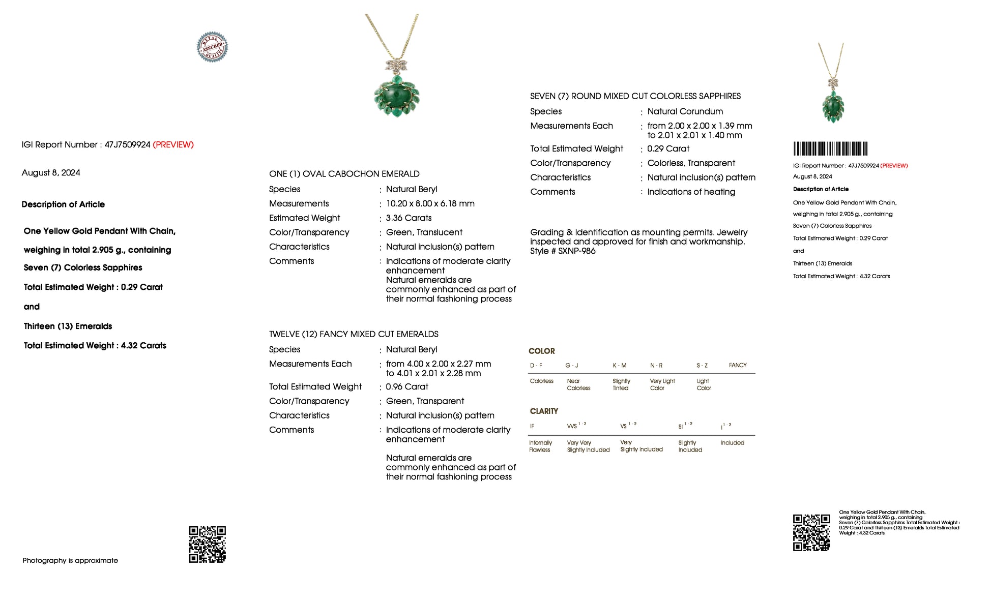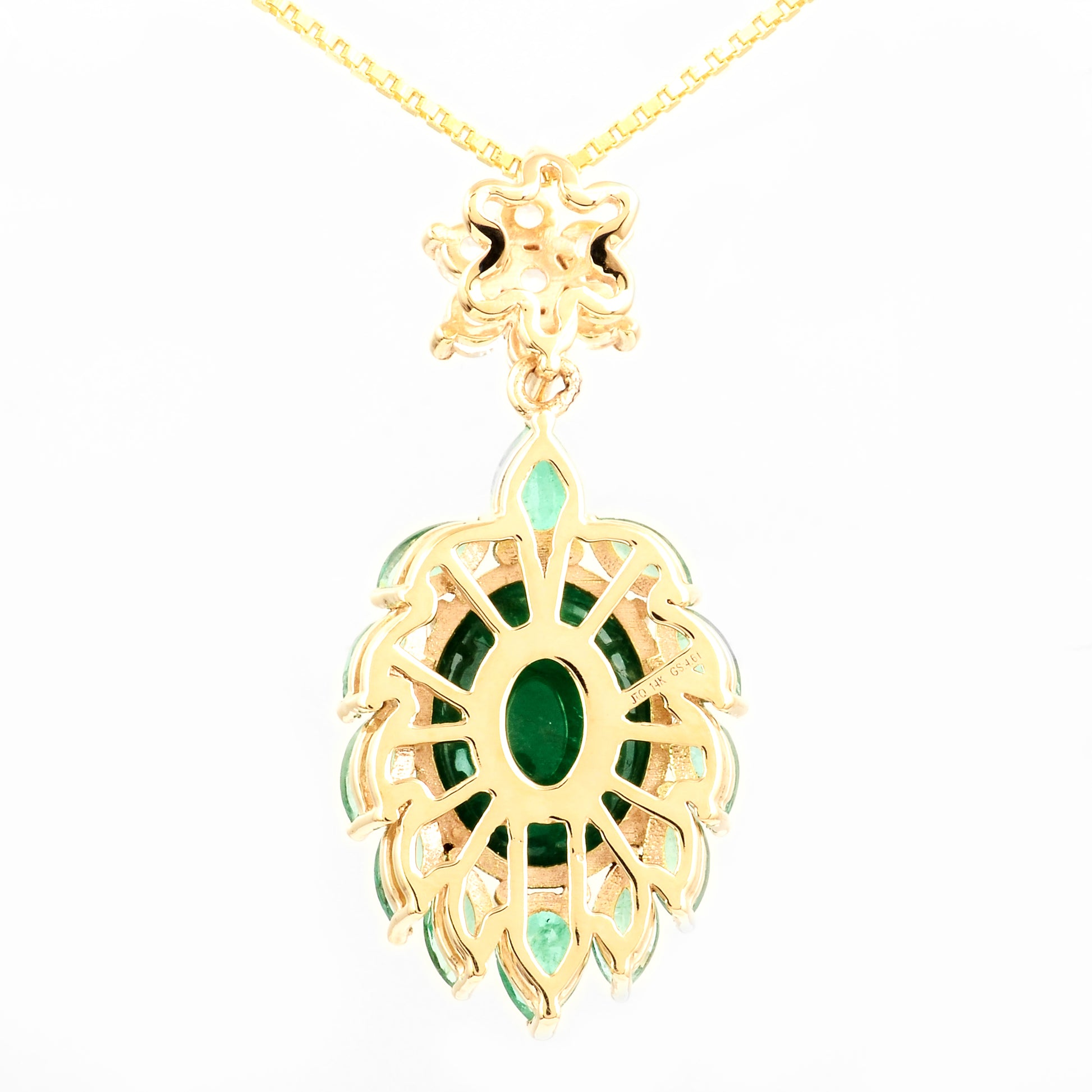 4.61 Total Carat Natural Beryl Emerald 14K Gold Pendant With Chain