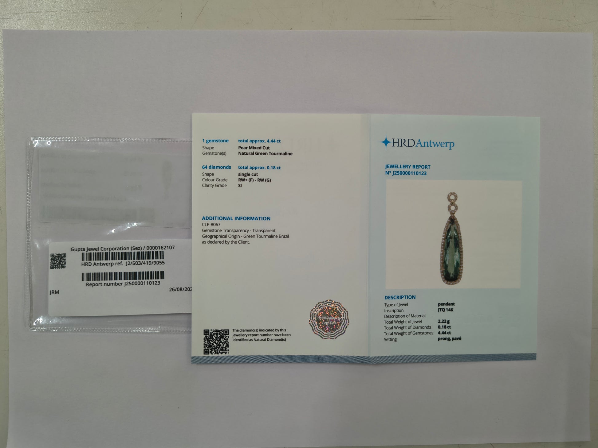 4.62 Ct Pear Mixed Cut Natural Tourmaline 14K Gold Pendant