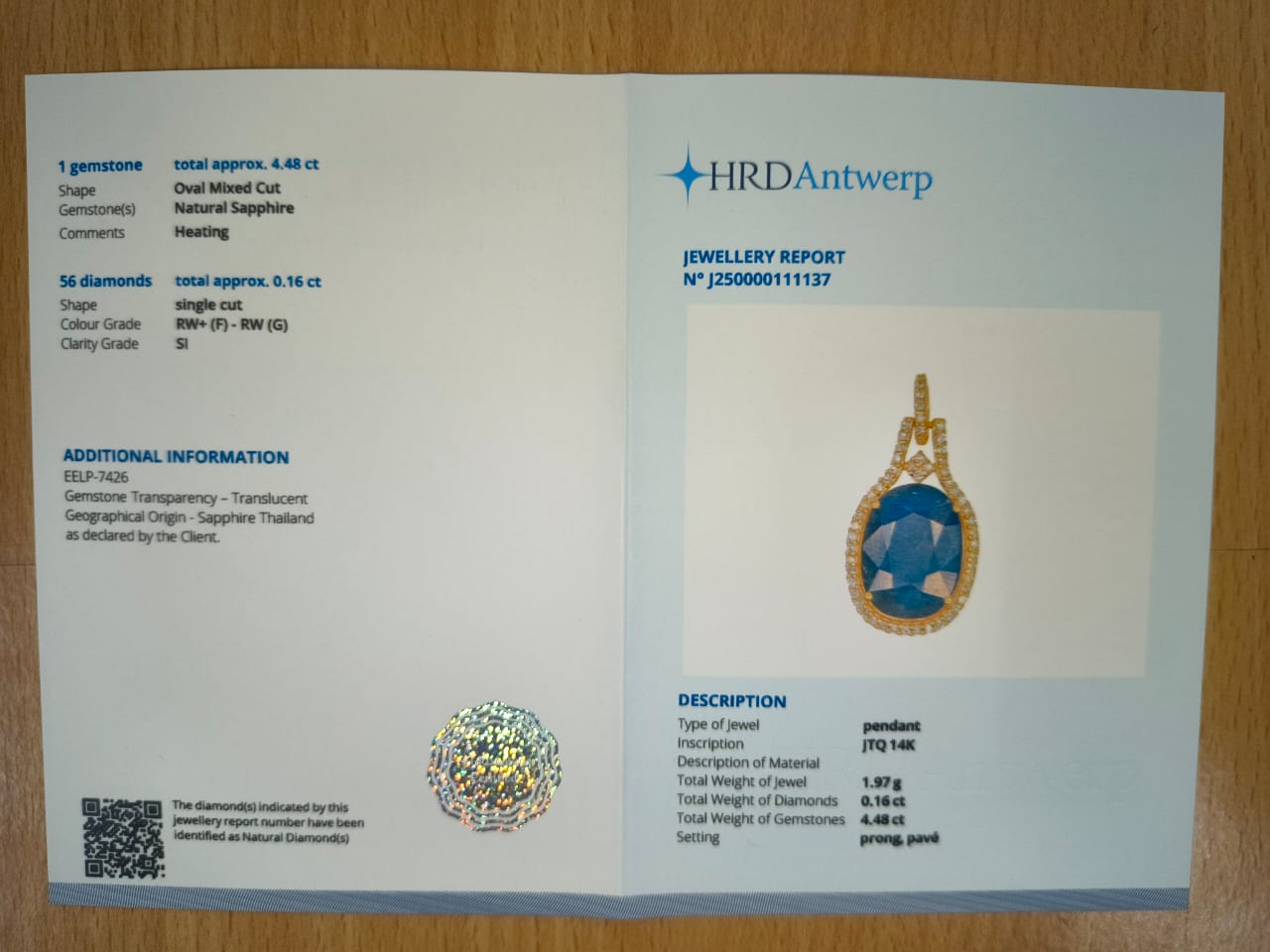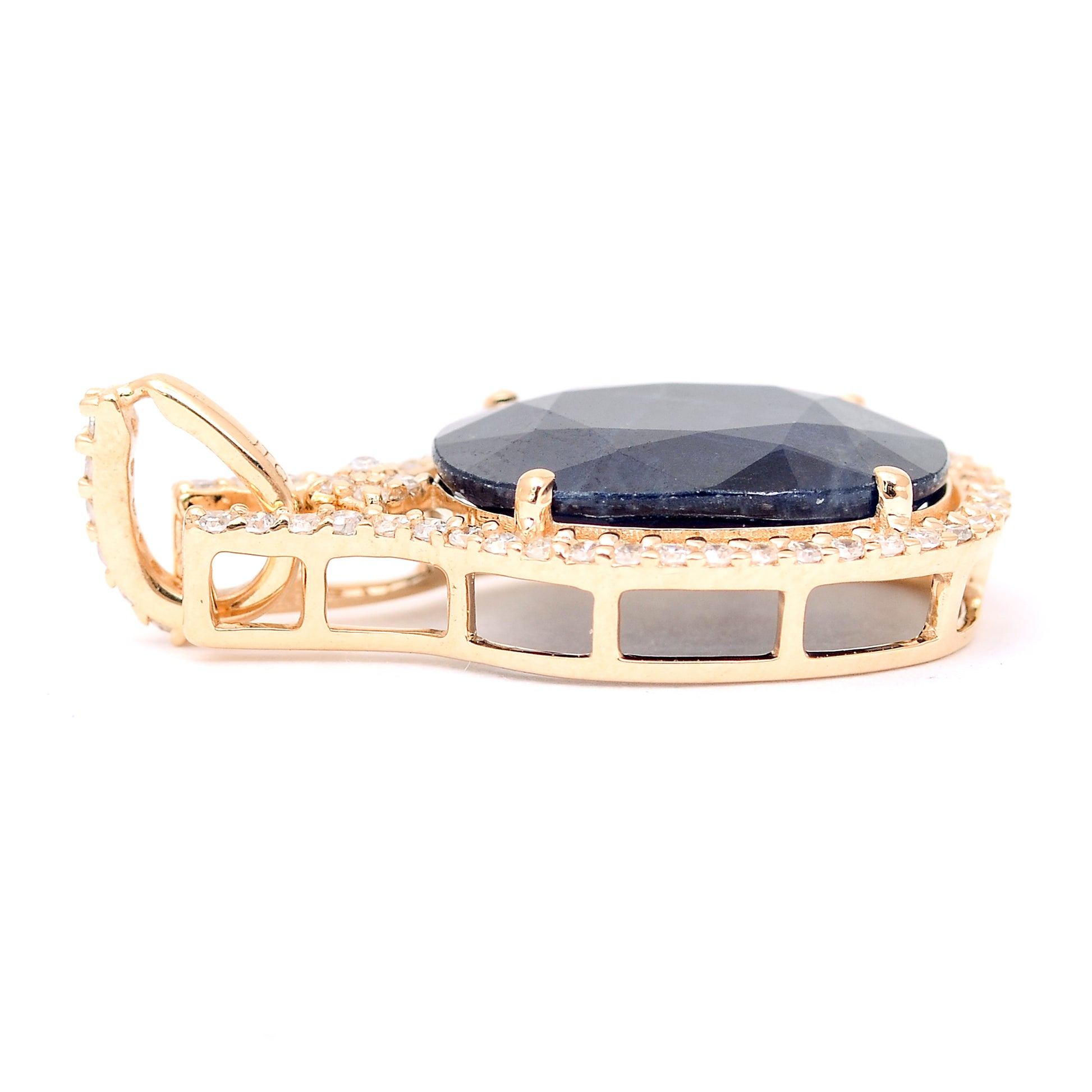4.64 Ct Oval Mixed Cut Natural Sapphire 14K Gold Pendant