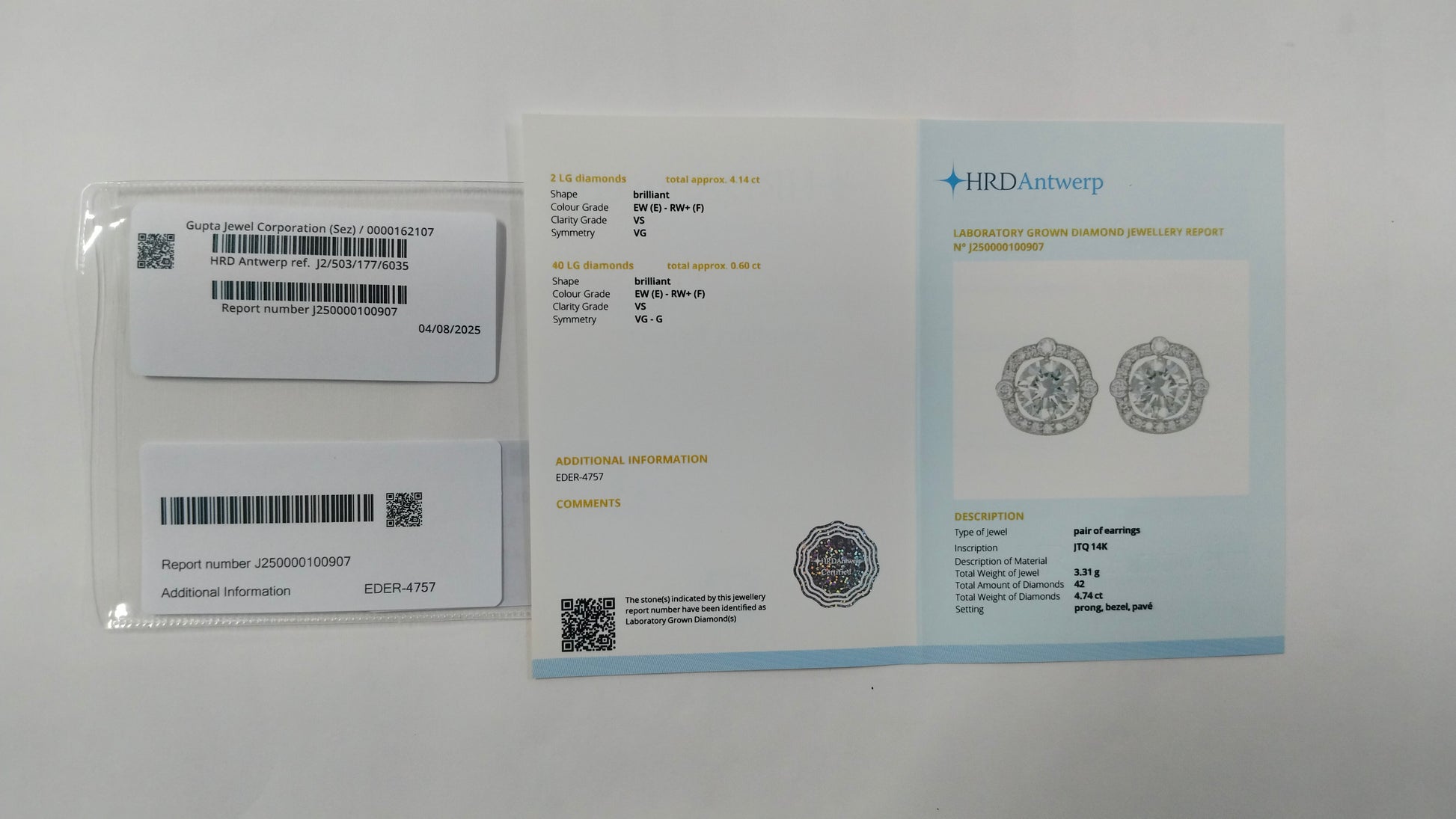 4.74-Carat Lab-Grown Diamond Round Cut Brilliant Earrings ? HRD Certified