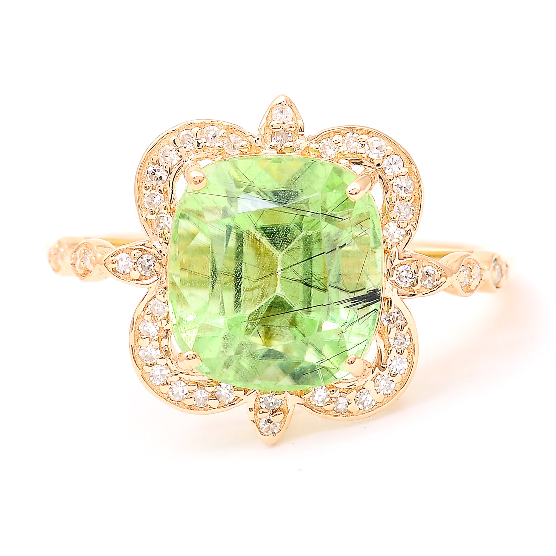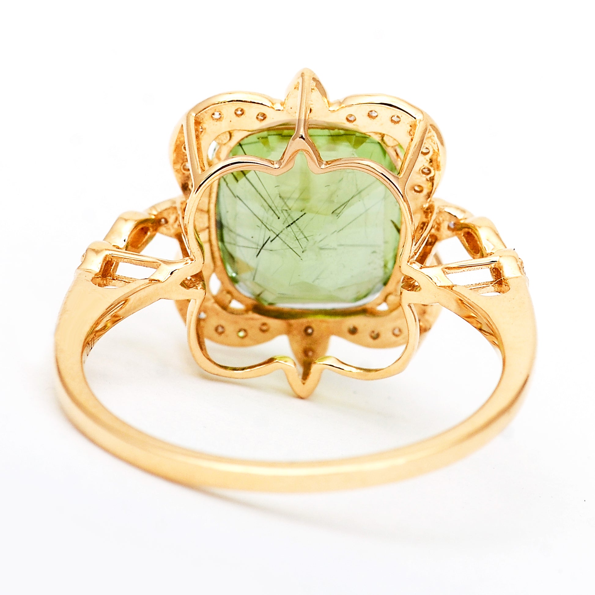 4.74 Ct Cushion Mixed Cut Natural Peridot 14K Gold Ring