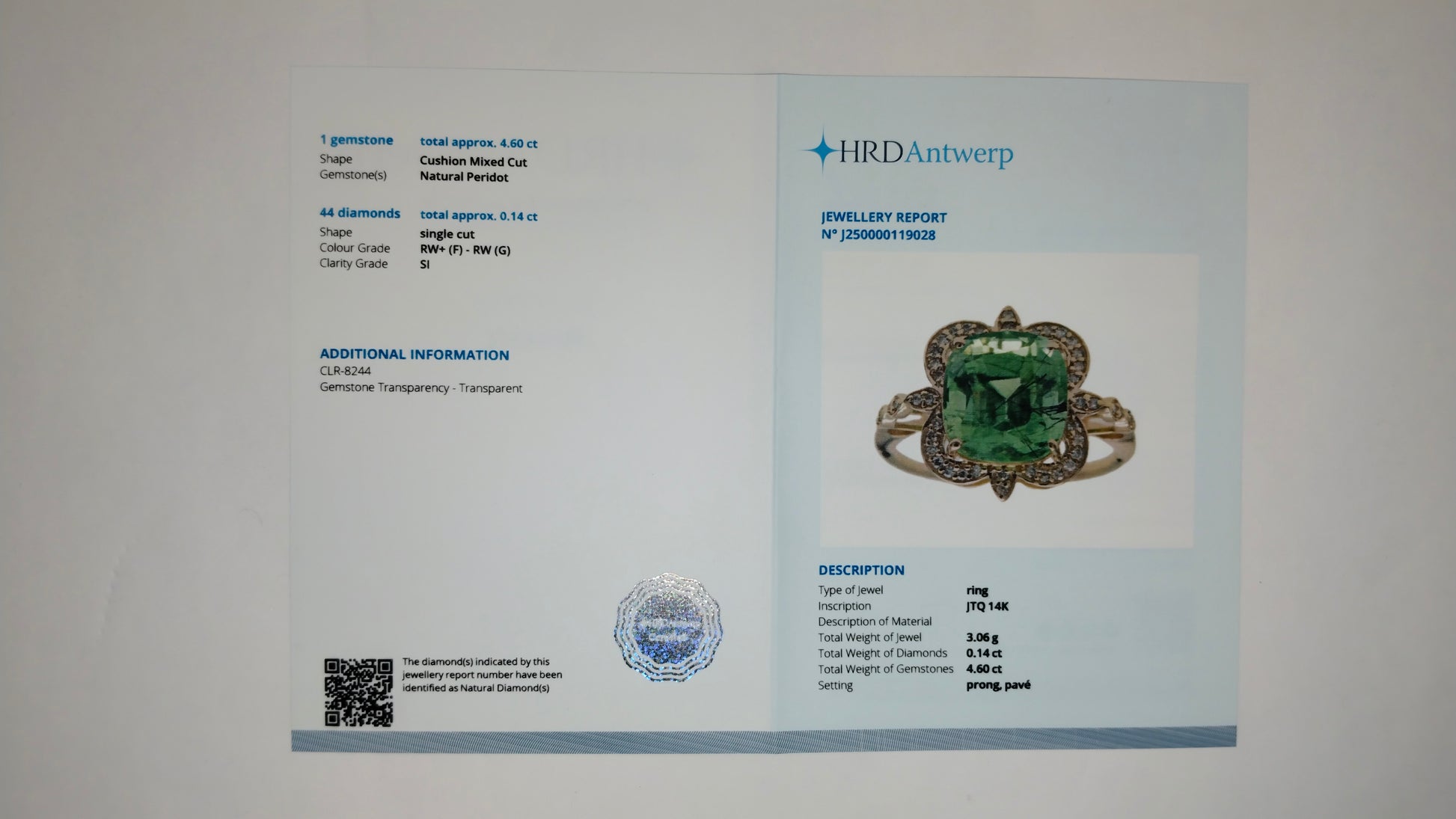 - Certificate Number J250000119028