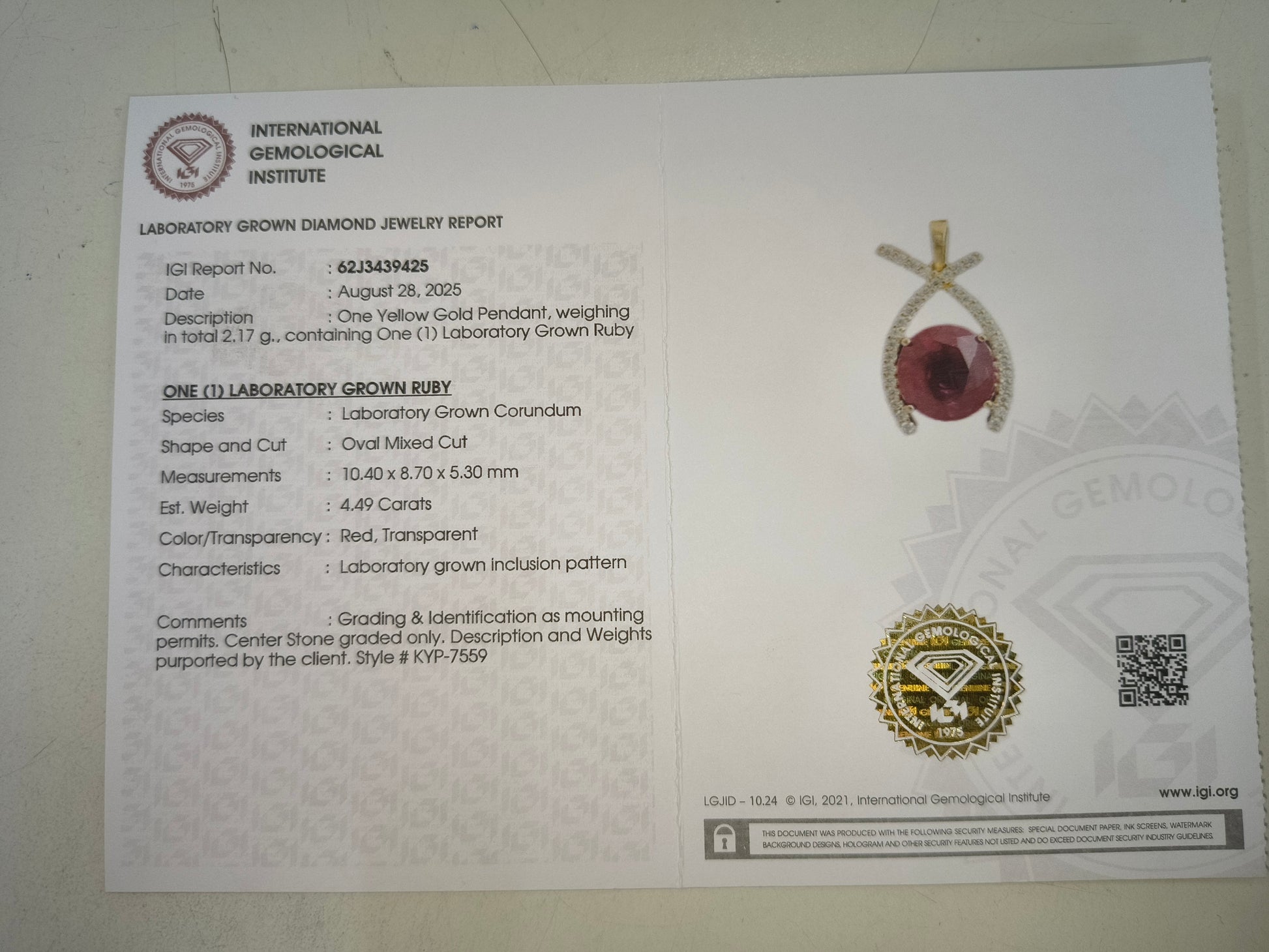 - Lab Name: International Gemological Institute (IGI)
