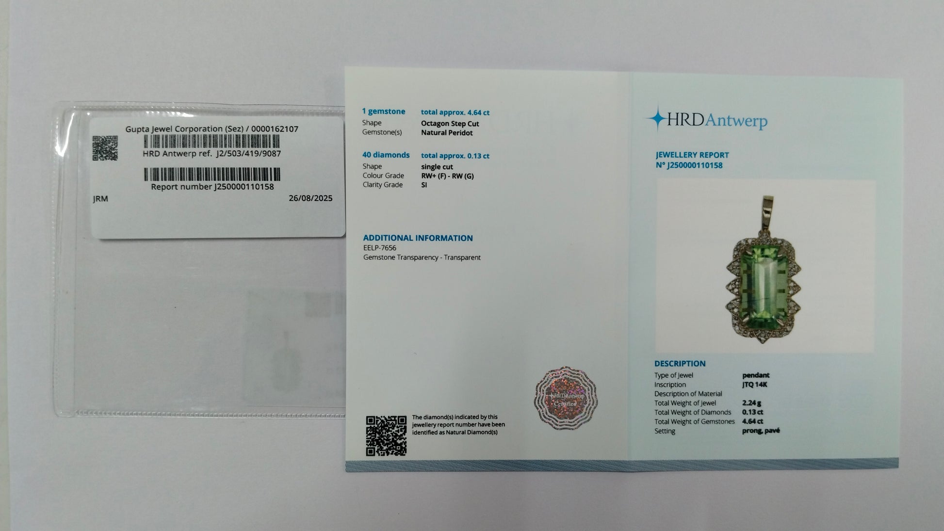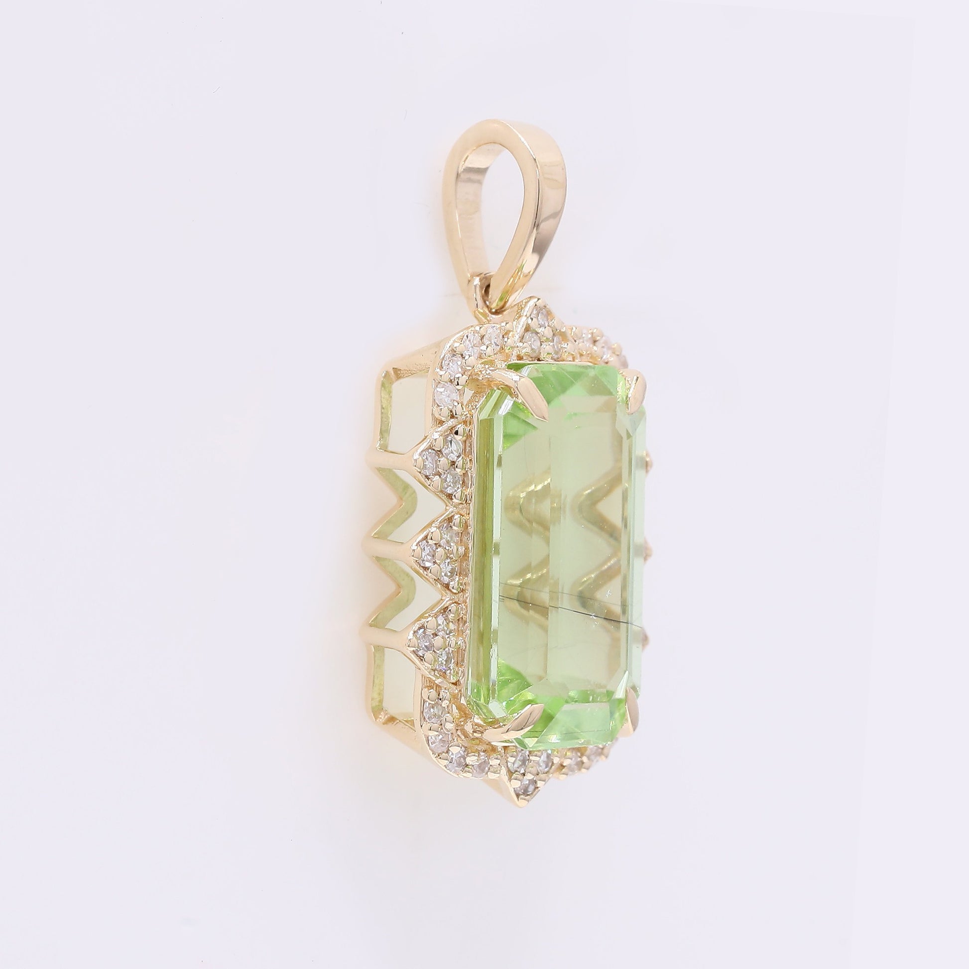 4.77 Ct Octagon Step Cut Natural Peridot 14K Gold Pendant