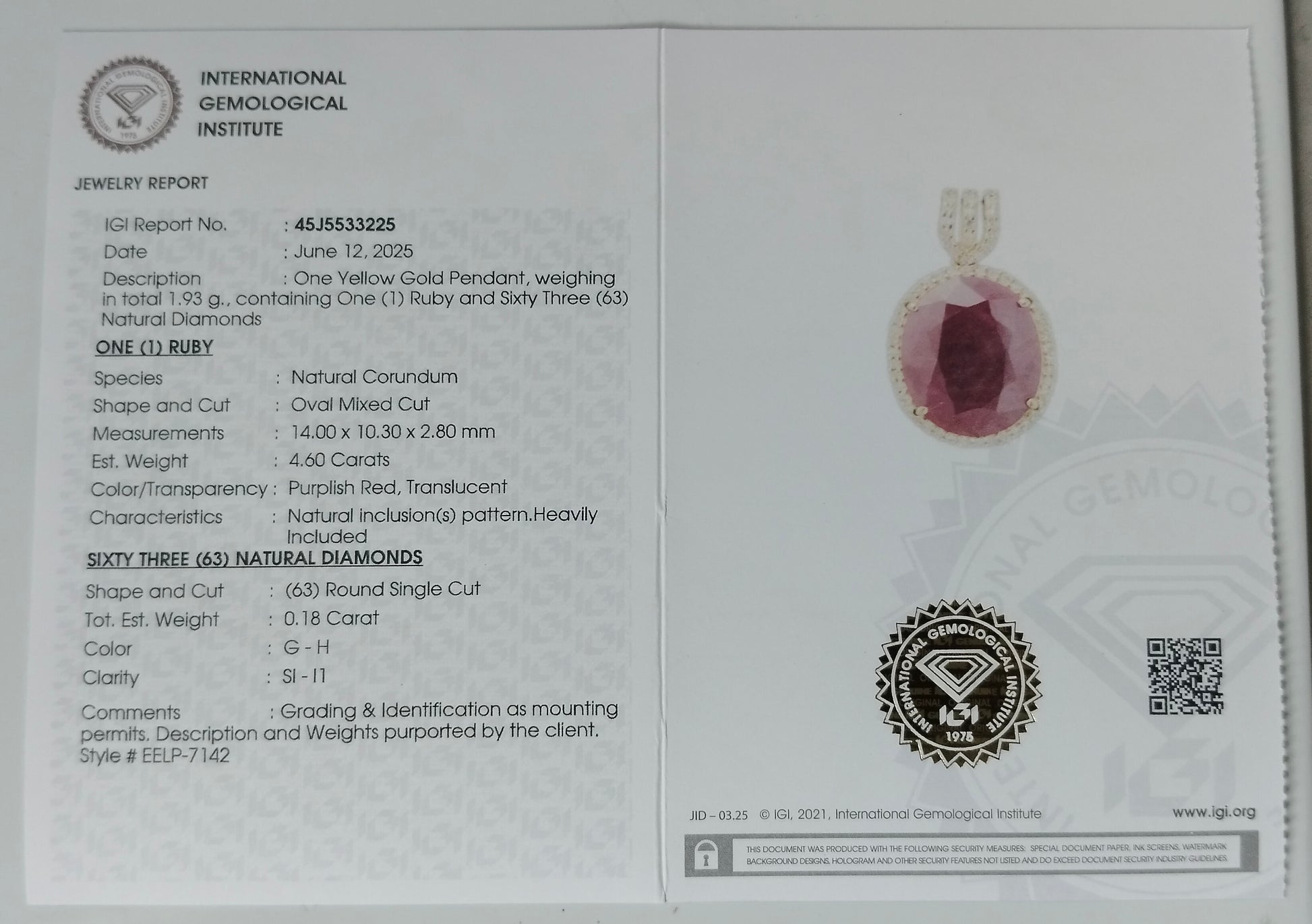 4.78 Ct Oval Mixed Cut Natural Corundum Ruby 14K Gold Pendant