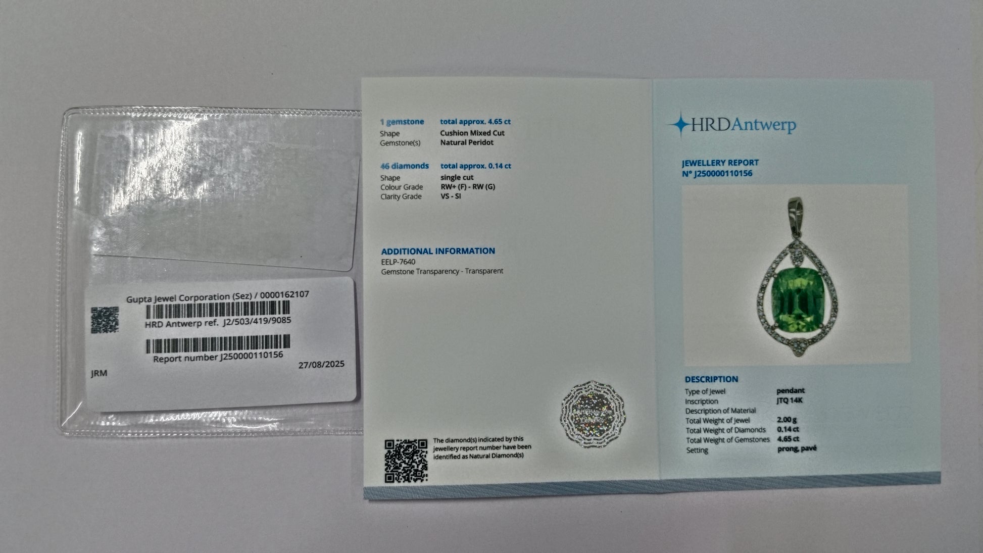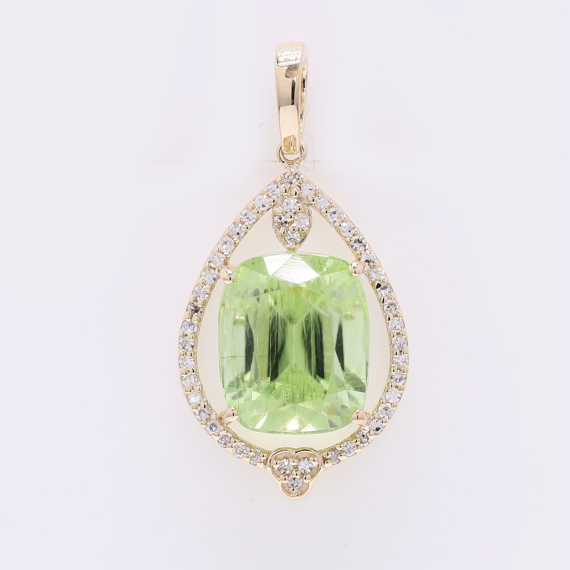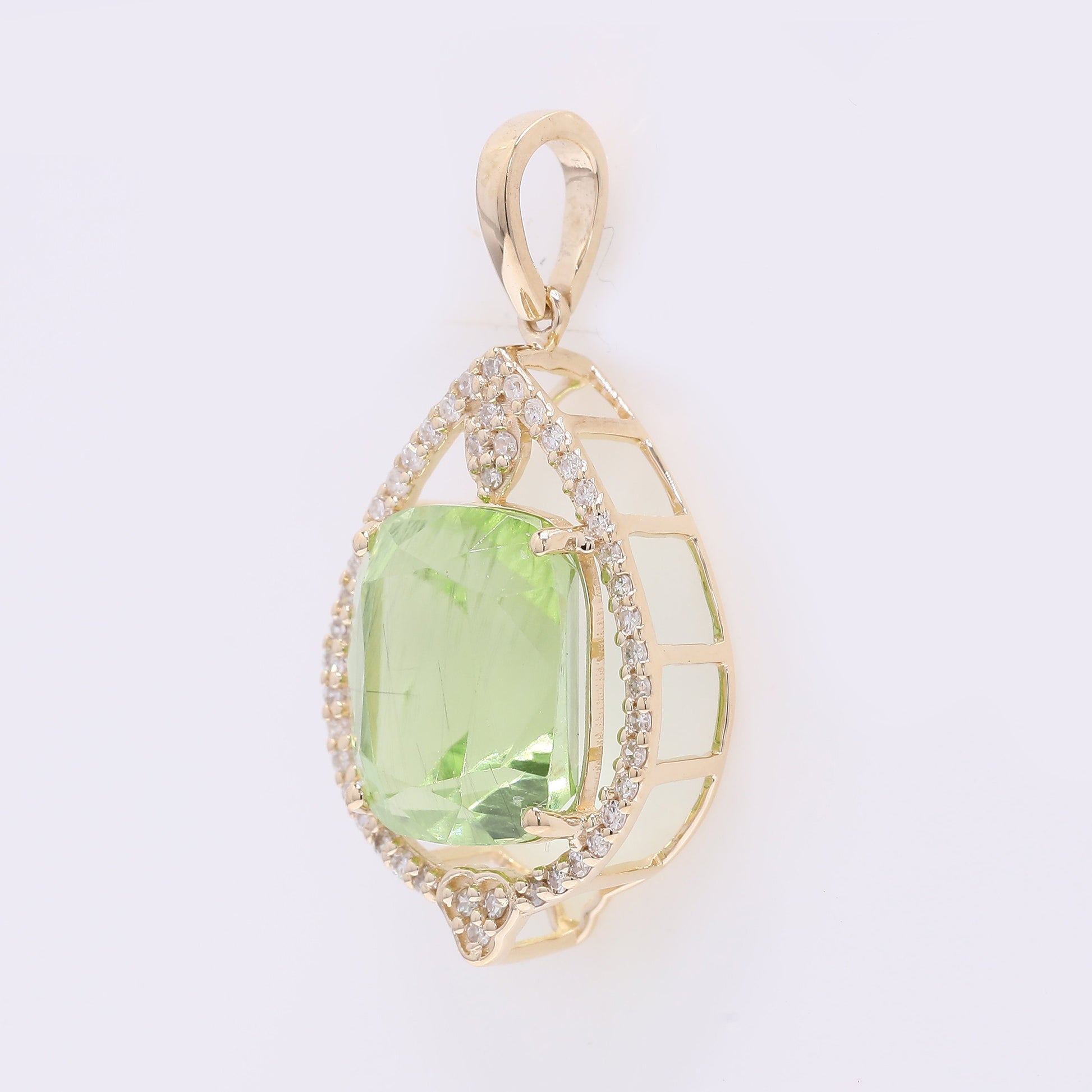 4.79 Ct Cushion Mixed Cut Natural Peridot 14K Gold Pendant